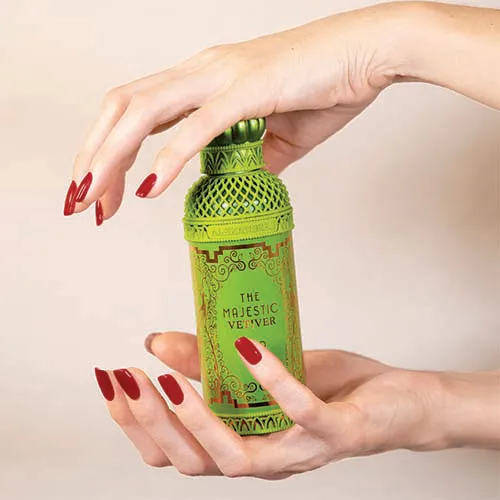 Parfémovaná voda The Majestic Vetiver Alexandre.J se vrací k uvolněnému životnímu stylu a kreativní energii Francouzské riviéry. V tomto středomořském prostředí byl napsán příběh Gatsbyho a objevily se první „Chypre parfémy“. Vůně se otevírá tóny bazalky a grapefruitu, které navodí pocit svěžesti a volnosti. Povznášející vůně koriandru v srdci parfému je obohacena květinovými tóny liatris. Lahodné tóny vetiveru v základu se mísí s výraznou dřevitou oud vůní. Semiš a labdanum dodávají parfému osobitý charakter.