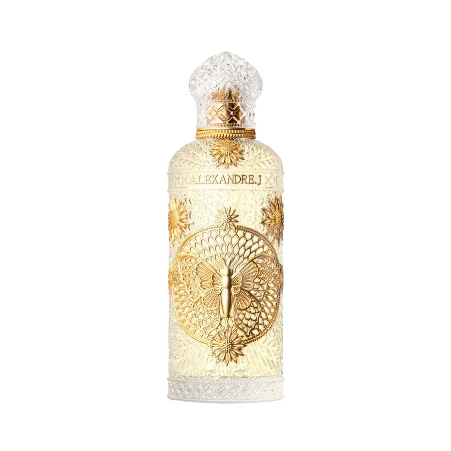 Květinovo pižmová vůně Butterfly z kolekce Art Nouveau značky Alexandre.J symbolizuje transformaci a svobodu. Mísí vzácné ingredience, jako jsou hruška, růžový pepř, tuberóza a neroli. Evokuje pulzující cestu migrujících motýlů a současně je dokonalým znázorněním rozmanitého květinového buketu, který odráží eleganci a sofistikovanost.