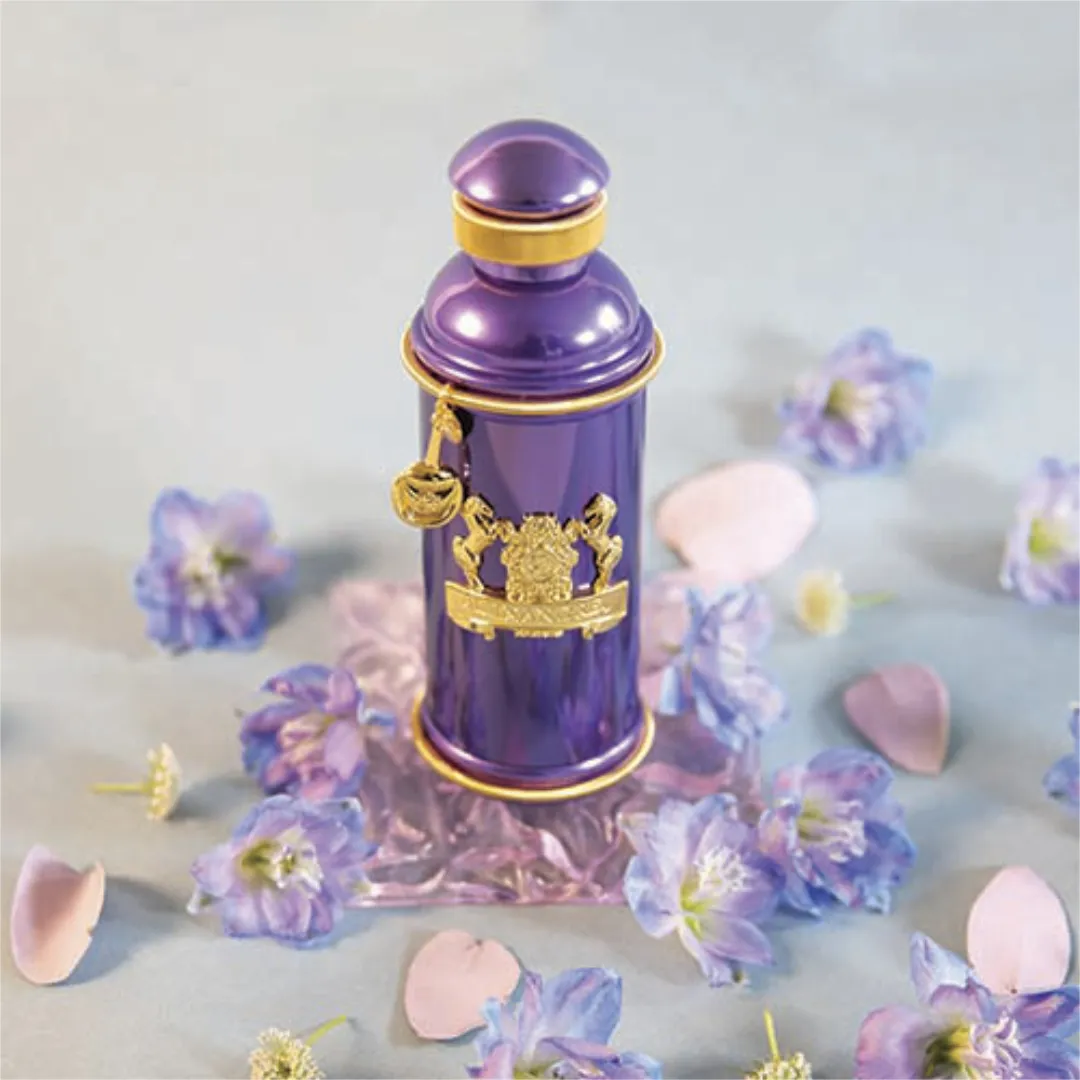 Parfémovaná voda Purple Iris Alexandre.J nabízí mladou a svěží verzi vůně kosatce. Tato nádherná elegantní vůně je klenotem princezny moderní doby. První tóny poodhalují čerstvost exotického ovoce a křupavého jablka. Následně se rozvine vůně barevného kosatce. Tóny růže a jasmínu pak přecházejí svůdným způsobem v tóny kašmírového dřeva, vanilky a pižma.