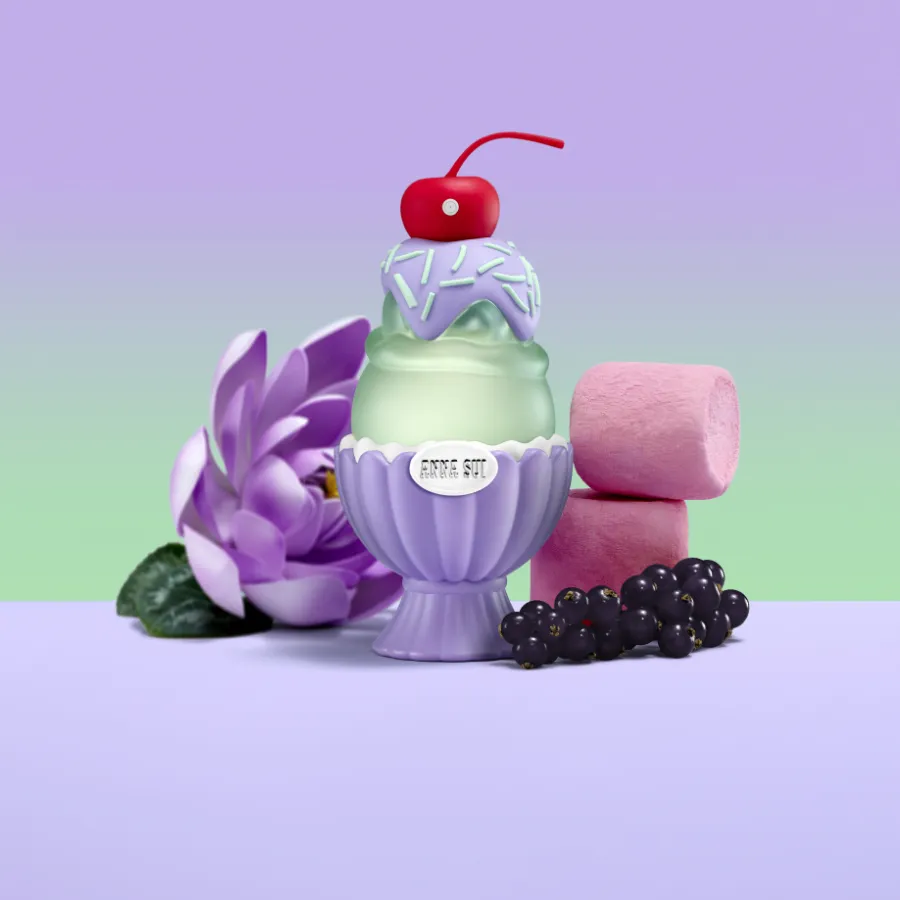 Trendy vůně ve zmrzlinovém poháru od japonského ilustrátora. Violet Vibe je květinová a ambrová vůně s lotosem pro cool dívky.