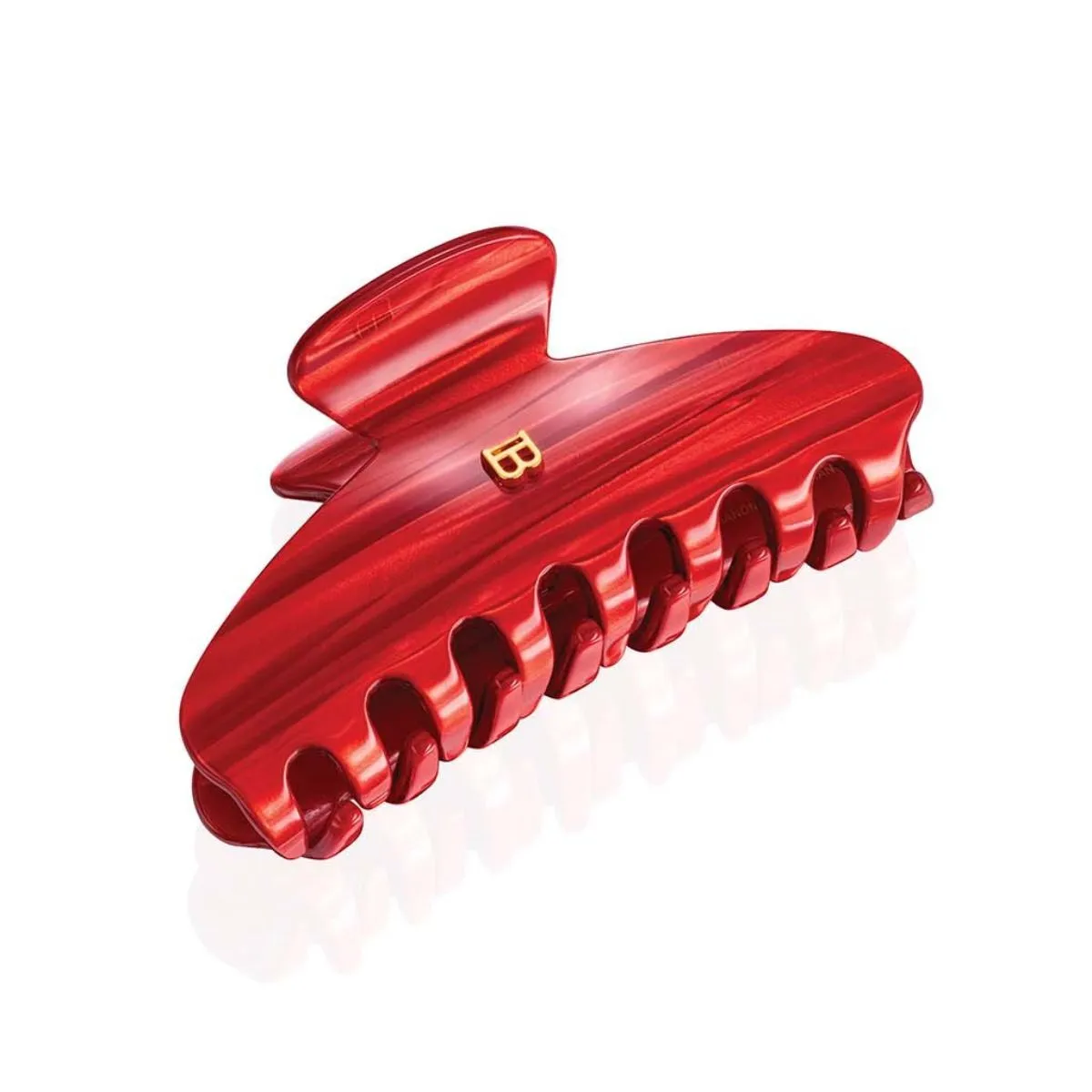Vysoce kvalitní, ručně vyrobený vlasový klip z odolného acetátu celulózy, zdobený typickým znakem "B" vytvořeným z 14karátového plátkového zlata. Velice pevný, avšak pružný materiál je hypoalergenní a šetrný vůči vlasům i pokožce hlavy.