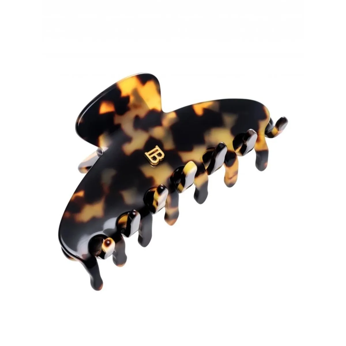 Vysoce kvalitní, ručně vyrobený vlasový klip z odolného acetátu celulózy, zdobený typickým znakem "B" vytvořeným z 14karátového plátkového zlata. Velice pevný, avšak pružný materiál je hypoalergenní a šetrný vůči vlasům i pokožce hlavy.