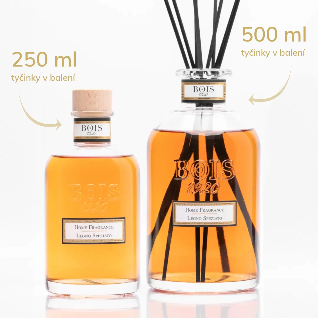 Kombinace teplých tónů koření a aromatických bylin je okouzlujícím smyslovým zážitkem. Dodá vašemu interiéru pocit útulna a příjemnou energii. Tajemná a intenzivní vůně, ideální jako dekorace do velkých prostor. Obsahuje 8 bambusových tyčinek. Intenzitu vůně můžete regulovat množstvím použitých tyčinek a jejich otáčením. Doba provonění se může u objemu 100 - 250 ml pohybovat od 2 do 6 měsíců v závislosti na velikosti prostoru, větrání, teplotě a regulaci intenzity vůně.