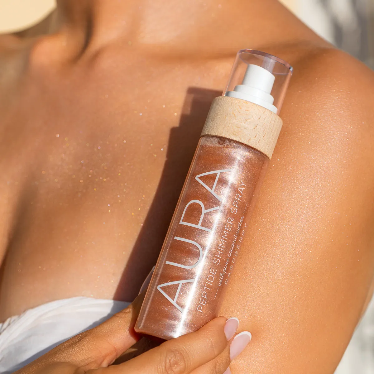 Přírodní třpytivý sprej s peptidy na pleť, tělo i vlasy. Rozjasňuje, hydratuje a omlazuje. Elegantní lesk a aktivní anti-aging péče v jednom.