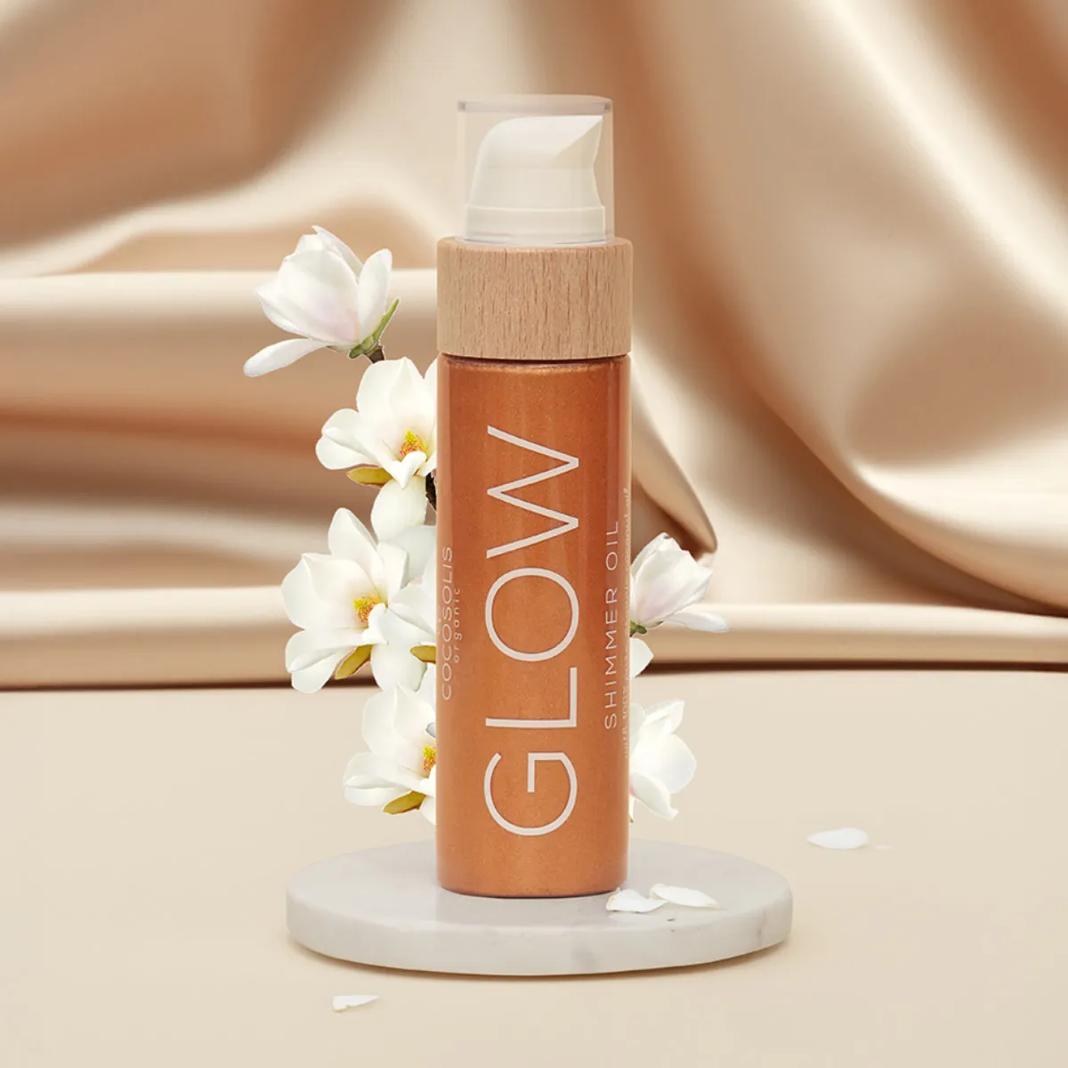 Rozjasňující olej se třpytkami Cocosolis Glow obsahuje směs bio olejů, přírodního vitaminu E a přírodní slídy (jemných minerálních částic), která pokožku hydratuje a hloubkově vyživuje. Zanechává ji hedvábně jemnou a díky třpytivým částicím zvýrazňuje její přirozený odstín a opálení.