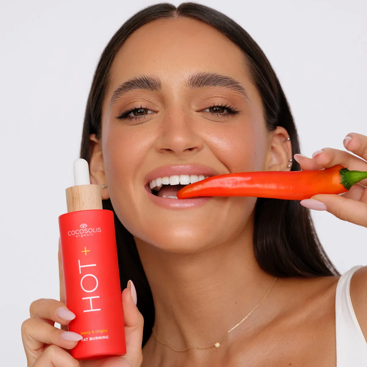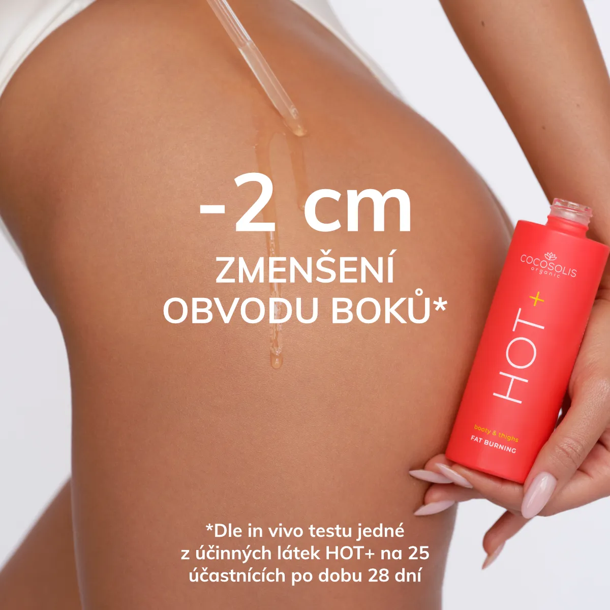 Zeštíhlující sérum Cocosolis Hot+ má inovativní složení s přírodními aktivními látkami, které působí synergicky. Podporuje spalování tuků, zabraňuje jejich opětovnému ukládání a redukuje projevy celulitidy. Je obohacen o hydratační složky a rostlinné extrakty. Stimuluje tvorbu kolagenu, vyhlazuje a tvaruje. Současně podporuje odvodnění, dodává pokožce antioxidanty a hydratuje ji. Zanechává pokožku hladkou a zářivou.