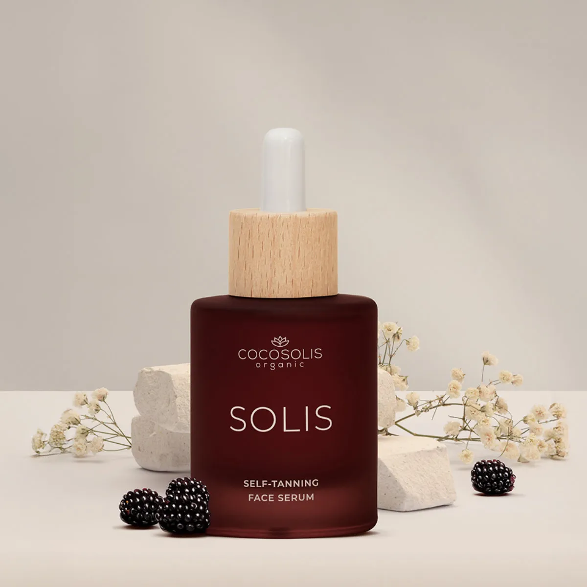 Samoopalovací sérum na obličej Cocosolis Solis s obsahem kyseliny hyaluronové, provitaminu B5, kokosové vody a extraktu z ostružin dodá pleti krásné, syté opálení a pomáhá zachovat její mladistvý vzhled a svěžest. Díky kombinaci boosterů a anti-ageing aktivních látek dosáhnete přirozeně vypadajícího opálení šetrným způsobem a dodáte pleti hydratační a omlazující péči.