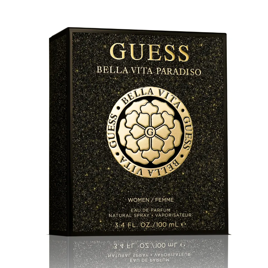 Dámská vůně Guess Bella Vita Paradiso rozšiřuje oblíbenou řadu vůní Bella Vita. Oslavuje sebedůvěru a smyslnost ženy svým oslnivě zlatým leskem. Je inspirovaná božskou krásou třpytivého italského ráje. Její vůně je gurmánská, květinově ambrová.