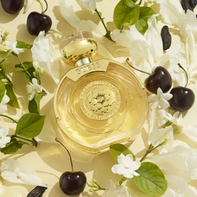 Tato ovocná a květinová vůně se otvírá hravými a živými tóny italského bergamotu a černého rybízu pod vedením sladkých černých třešní. Smyslnost ženy Guess podtrhuje sametově bílé květinové srdce, tvořené tóny jasmínu, vanilkové orchideje a zvýrazněné tuberózou. Hřejivá směs jantaru, fazole tonky, pralinek a lehkého pižma vytváří sladký a nezapomenutelný závěr vůně.