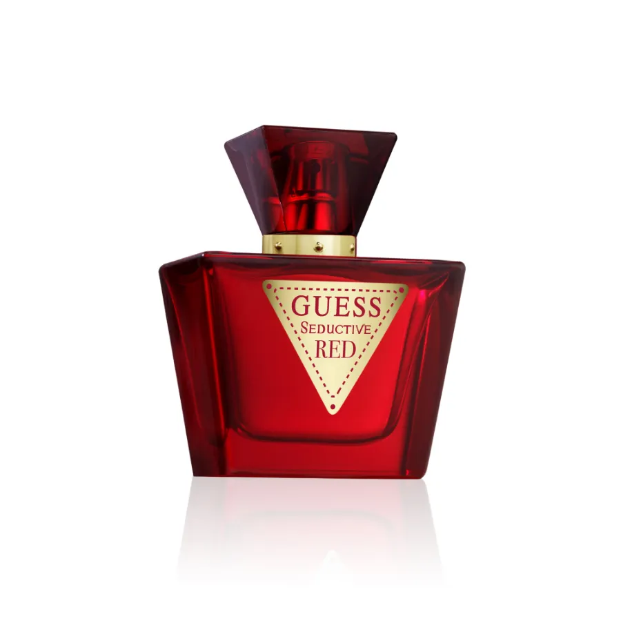 Flakon v červeném svůdném skle oživuje pokušení vůně Guess Seductive Red, které doplňuje ikonické logo Guess ve zlaté barvě.