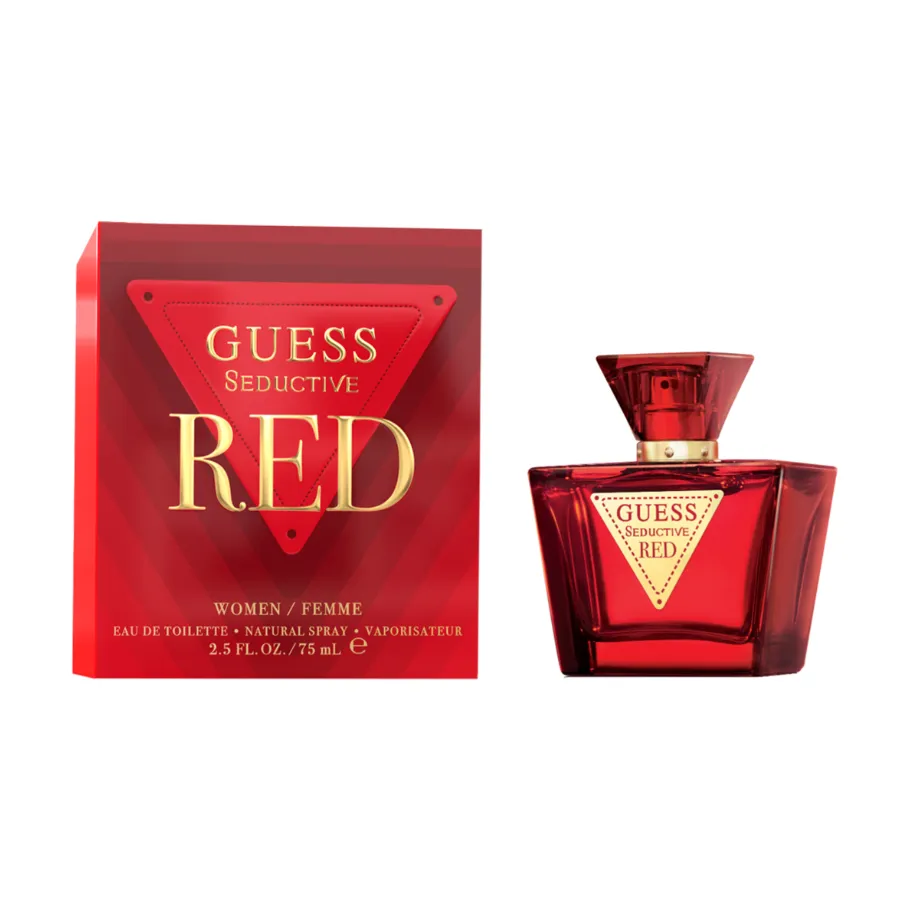 Flakon v červeném svůdném skle oživuje pokušení vůně Guess Seductive Red, které doplňuje ikonické logo Guess ve zlaté barvě.