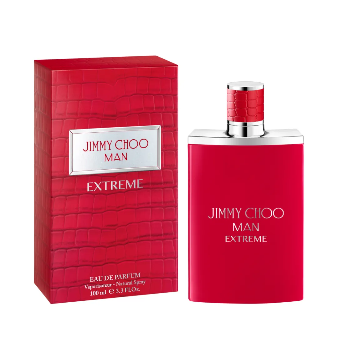Tato edice je aktualizací ikonického původního flakonu ve tvaru čtverce se stříbrným uzávěrem, nová verze je odlita v zářivém šarlatovém laku. Jimmy Choo Man Extreme je potištěn záblesky stříbrného písma, smyslné víčko z červeně potištěné kůže ukrývá odvážnou vůni obsaženou uvnitř.