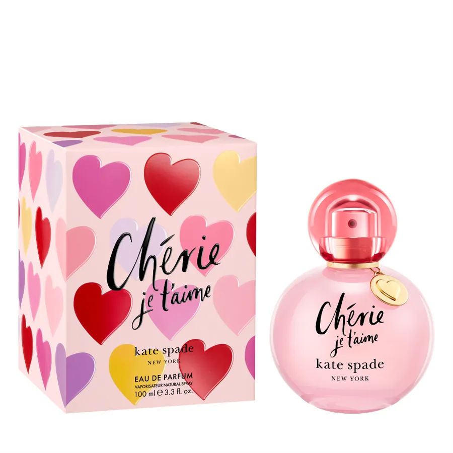 Kate Spade Chérie Je t'aime je bílá květinově-ovocná parfémovaná voda, která zachycuje radost ze zamilovanosti.