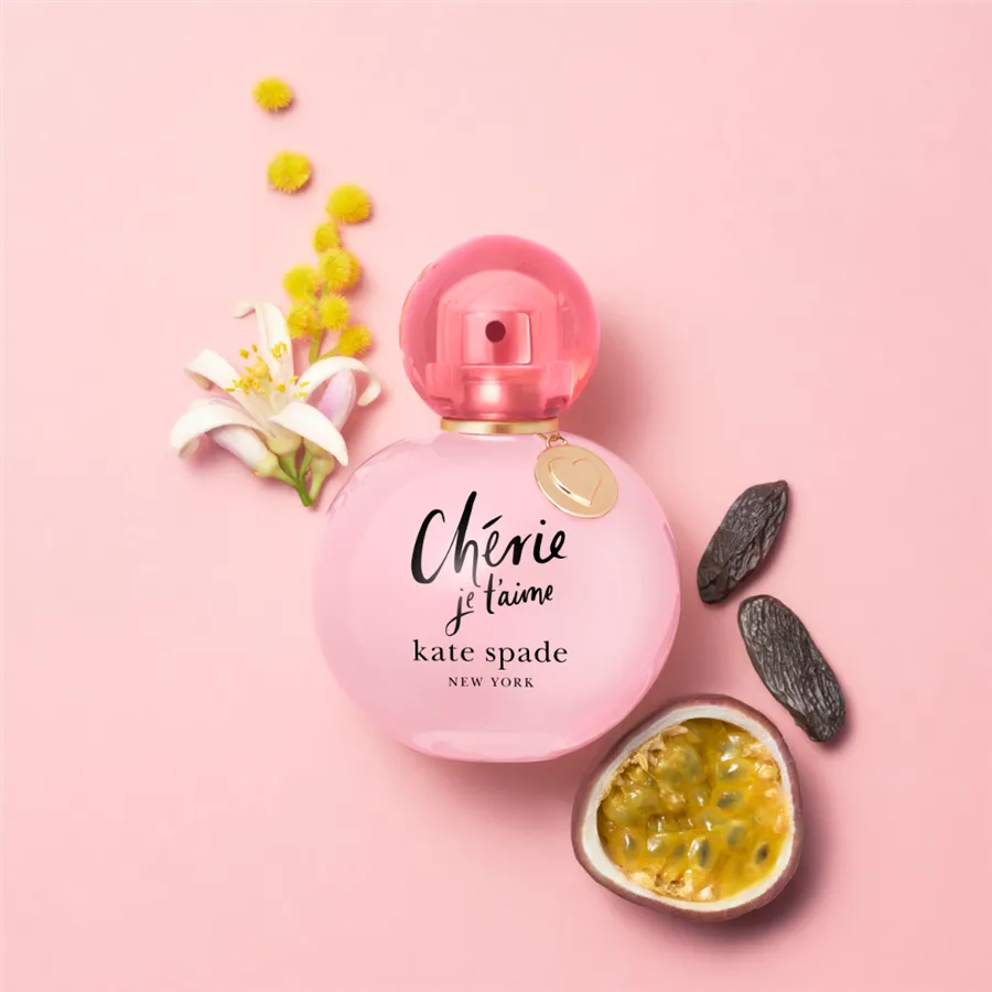 Kate Spade Chérie Je t'aime je bílá květinově-ovocná parfémovaná voda, která zachycuje radost ze zamilovanosti.