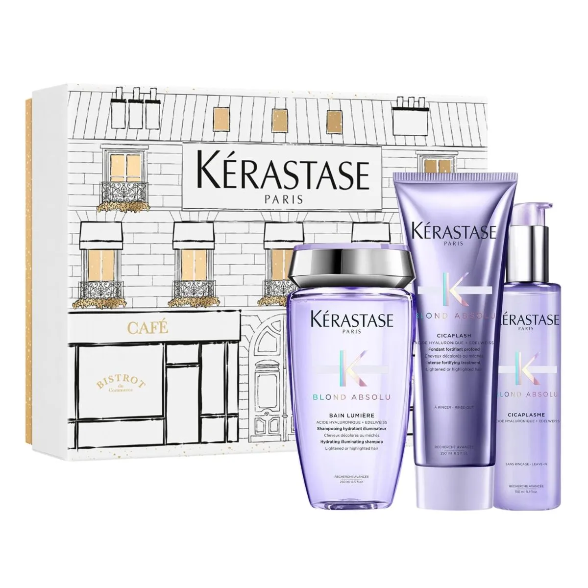 Sada obsahuje:Blond Absolu Šampon pro blond a melírované vlasy (Blond Absolu Bain Lumière) 250 mlBlond Absolu Kondicionér pro blond, zesvětlené a melírované vlasy (Blond Absolu Cicaflash) 200 mlBlond Absolu Termoochranné sérum pro zesvětlené a melírované vlasy (Blond Absolu Cicaplasme) 150 mlUhlazující šamponová lázeň je ideální pro všechny vlasy náročné na úpravu, která zanechává vlasy v pohybu, napomáhá zkrotit nepoddajné vlasy.Jak používat produkty:1. Naneste na mokré vlasy a jemně vmasírujte. Důkladně opláchněte.2. Speciální kondicionér uhlazuje vlasovou strukturu, dodává báječnou jemnost a lesk, poskytuje vašim vlasům intenzivní výživu, hydrataci a perfektně usnadňuje konečnou úpravu vašich vlasů.Řada Blond Absolu pro blond odstíny, zesvětlené a odbarvené vlasy neutralizuje žluté odlesky, ochraňuje barvu, regeneruje a posiluje. Vlasy jsou lesklé, hydratované a zářivě blond.Kérastase je inovativní vlasová kosmetika pro nejnáročnější zákazníky. Již od roku 1964 nabízí jedinečné profesionální produkty na míru všem typům vlasů. Mísí účinné aktivní látky na základě nejnovějších výzkumů. Díky úzké spolupráci s profesionálními kadeřníky vlasům opravdu rozumí.