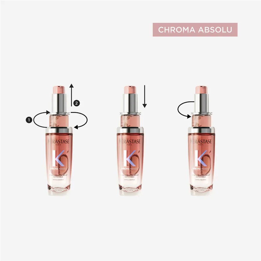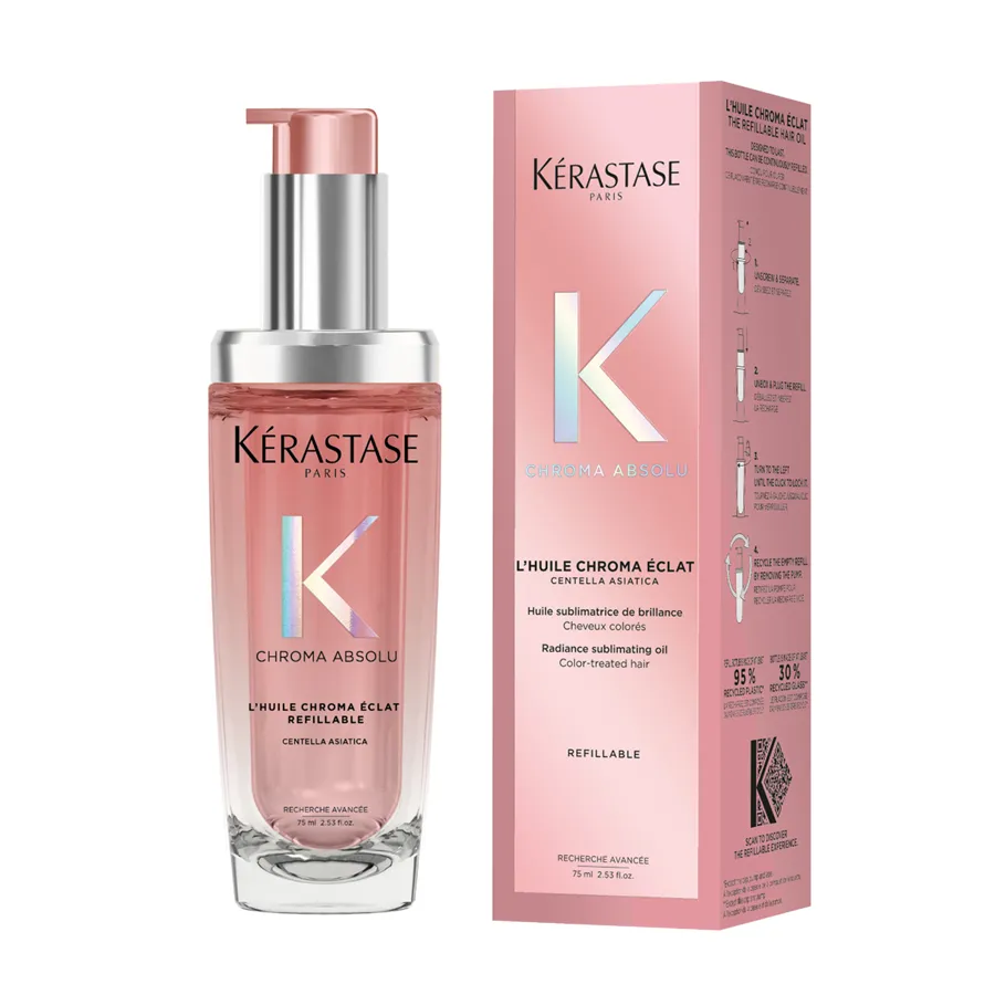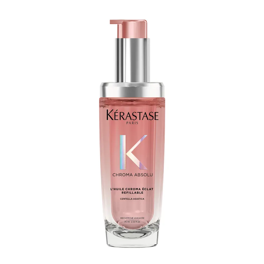 Chroma Absolu L’huile Chroma Éclat. Tento luxusní elixír zahalí vaše vlasy do hedvábného doteku, podtrhne jejich oslnivý lesk a prodlouží zářivost barvy. Složení obohacené o vzácný pupečník asijský nejen chrání barvu, ale také zanechává jemnou, podmanivou vůni, která vás bude provázet po celý den. Dopřejte svým vlasům něžnou péči, která je rozmazlí a dodá jim neodolatelnou hebkost – každý dotek bude potěšením. S touto inovativní a udržitelnou péčí přenesete profesionální krásu do svého každodenního života.