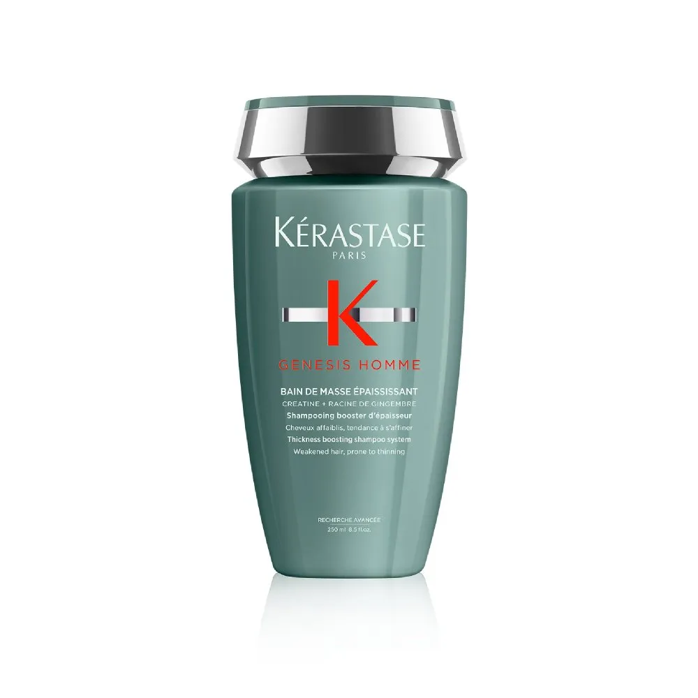 Šampon z řady Genesis Homme je speciálně navržena pro muže s oslabenými vlasy, které mají tendenci k padání. Tento zhušťující šampon poskytuje efektivní péči a okamžitý objem pro plnější vzhled.- Jemně čistí pokožku hlavy, vlasy i vousy.- Zvýrazňuje objem a texturu.- Okamžitý zhušťující efekt pro hustší vlasy.Výsledky po použití:- O 85 % menší lámavost a větší odolnost vlasů.- O 38 % větší objem pro plnější vzhled.- O 28 % hebčí vlasy s viditelným zlepšením struktury.Šampon obsahuje směs vysoce účinných látek, které okamžitě posílí a zesílí vlasové vlákno, čímž zajistí 5x plnější vzhled vlasů.Kérastase je inovativní vlasová kosmetika pro nejnáročnější zákazníky. Již od roku 1964 nabízí jedinečné profesionální produkty na míru všem typům vlasů. Mísí účinné aktivní látky na základě nejnovějších výzkumů. Díky úzké spolupráci s profesionálními kadeřníky vlasům opravdu rozumí.