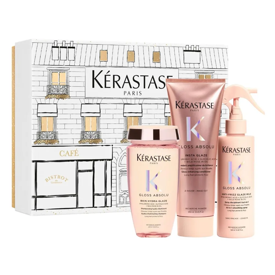 Řada Kérastase Gloss Absolu je určena pro dlouhé vlasy se sklonem ke krepatění. Díky obsahu kyseliny hyaluronové, kyseliny glykolové a oleje z divoké růže poskytuje vlasům hydrataci, lesk a pružnost bez zatížení. Pomáhá bojovat proti krepatění a dodává vlasům hladký a zářivý vzhled.