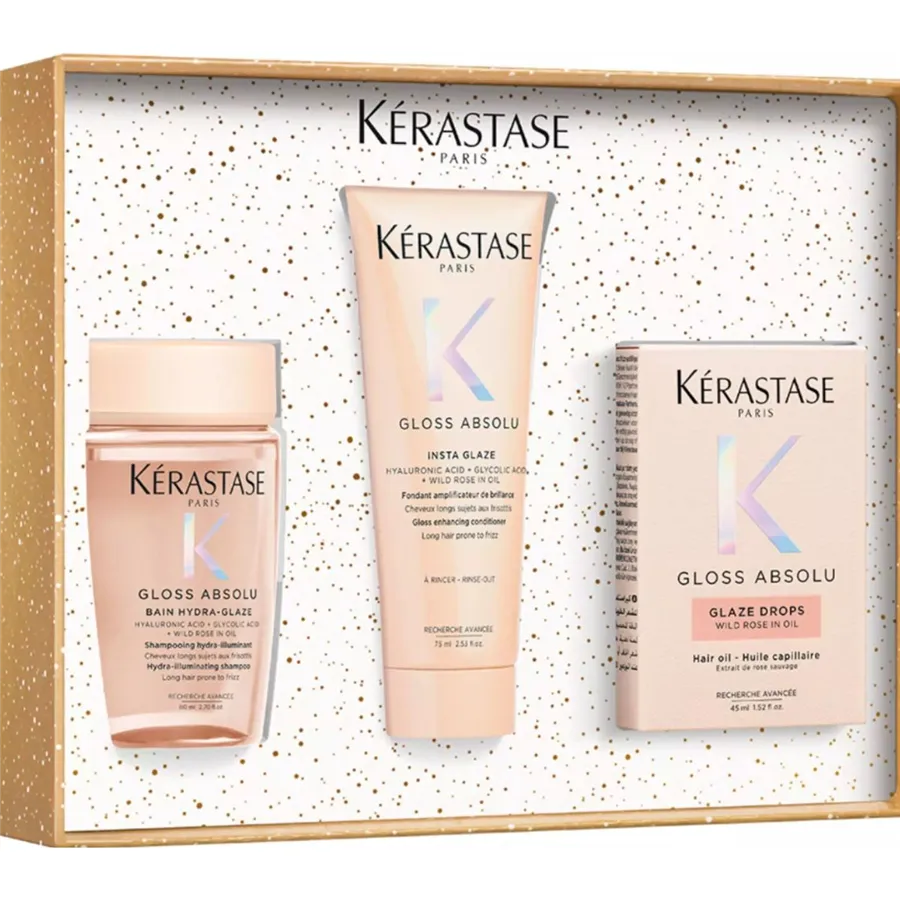 Řada Kérastase Gloss Absolu je určena pro dlouhé vlasy se sklonem ke krepatění. Díky obsahu kyseliny hyaluronové, kyseliny glykolové a oleje z divoké růže poskytuje vlasům hydrataci, lesk a pružnost bez zatížení. Pomáhá bojovat proti krepatění a dodává vlasům hladký a zářivý vzhled.