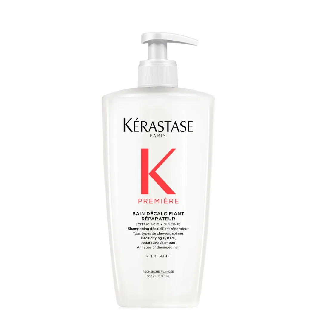 Obnovující šamponová lázeň z řady Première odvápňuje a regeneruje všechny typy poškozených vlasů. Šampon uvolňuje bohatou pěnu a neodolatelnou citrusovou vůni. Vlasy jsou hladké a snadno se rozčesávají, jsou lesklé a pružné.Tento profesionální šampon bez sulfátů jemně čistí pokožku hlavy a vlasy a zároveň eliminuje předávkování vápníkem, které dále oslabuje poškozené/citlivé vlasy. Vlasy jsou opraveny zevnitř a lámavost je snížena. Znovu získají 99 % své původní síly.Použití: Naneste malé množství na mokré vlasy, jemně vmasírujte a následně důkladně opláchněte.Kérastase je inovativní vlasová kosmetika pro nejnáročnější zákazníky. Již od roku 1964 nabízí jedinečné profesionální produkty na míru všem typům vlasů. Mísí účinné aktivní látky na základě nejnovějších výzkumů. Díky úzké spolupráci s profesionálními kadeřníky vlasům opravdu rozumí.