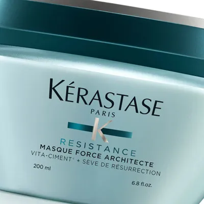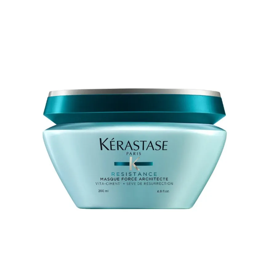 Obnovující maska pro velmi poškozené vlasy a roztřepené konečky Kérastase Resistant Masque Force Architecte ozdravuje křehké a poškozené vlasy díky účinným látkám, které obnovují konstrukci každičkého vlasového vlákna. Zabraňuje třepení konečků a lámání vlasů. Doplňuje potřebné živiny a vlasové proteiny od kořínků ke konečkům. Zanechává vlasy výrazně posílené, zacelené a hladké. Její složení je plné látek, ze kterých se vlasy přirozeně skládají, takže velmi dobře působí na jejich regeneraci. Je určena pro dlouhodobou péči. Při pravidelném používání se i silně zničené vlasy znovu vyhladí, zacelí a uzdraví. Doporučujeme používat 1 -2x týdně alespoň po dobu dvou měsíců.