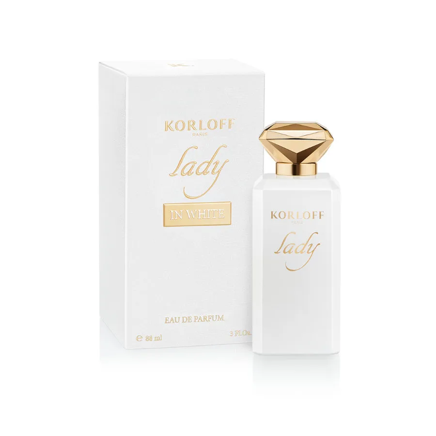 Vůně Lady In White je pokračováním bestselleru Lady Korloff v podmanivém pudrovém složení. Je ódou na mládí, prodchnutá poselstvím lehkosti a falešně důmyslné čistoty.