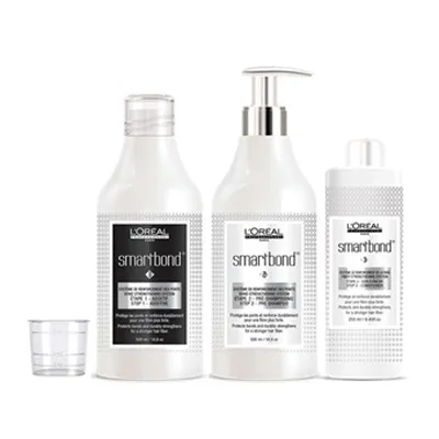 Ochranná a posilujicí vlasová kúra Smartbond značky L´Oréal pomáhá poškozeným, citlivým, mdlým, barveným, melírovaným a odbarvovaným vlasům. Kúra Smartbond umí posílit, zvýšit odolnost, zjemnit a přidat vlasům lesk. Jedná se o jedinečný systém, který chrání a posiluje vlasy během kadeřnických výkonů jako je barvení a odbarvování. Systém sestává ze tří komponentů. První dva se používají v salonech a třetí je k domácímu použití. Velmi snadno se používá a adaptuje do Vaší denní péče o vlasy.