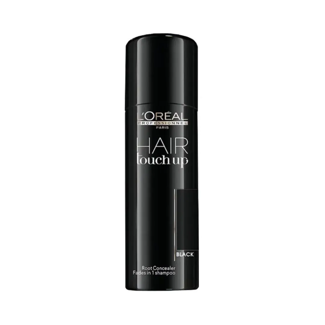 L'Oréal Professionnel Hair Touch Up je ideální pomocník pro zakrytí bílých vlasů a odrostů. Nabízí se v šesti odstínech: zlatý blond, tmavý blond, světlý hnědý, mahagonový, hnědý a černý. Díky mikrodifuznímu aplikátoru se sprej snadno nanáší a perfektně se slévá s přirozenou barvou vlasů. Výsledkem je rovnoměrné, okamžité krytí, které se jednoduše vymyje běžným šamponem.
