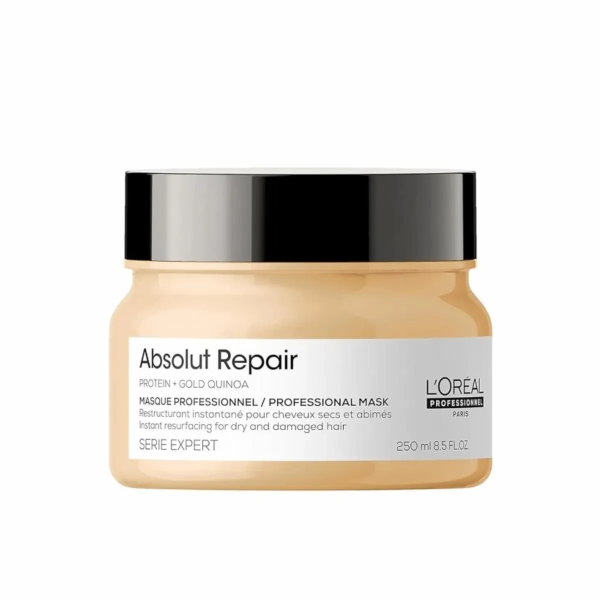 Šampon L'ORÉAL Professionnel Absolut Repair je ideální péčí pro suché a poškozené vlasy zatížené chemickými úpravami. Šetrně čistí, zanechává vlasy hebké, lehké a lesklé. Viditelně regeneruje poškozený povrch vlasů, posiluje je a usnadňuje jejich úpravu. Vytváří ochranný film, který chrání před dalším poškozením. Obsahuje pšeničné proteiny a extrakt ze zlaté quinoy, které dodávají vlasům výživu a vitalitu.