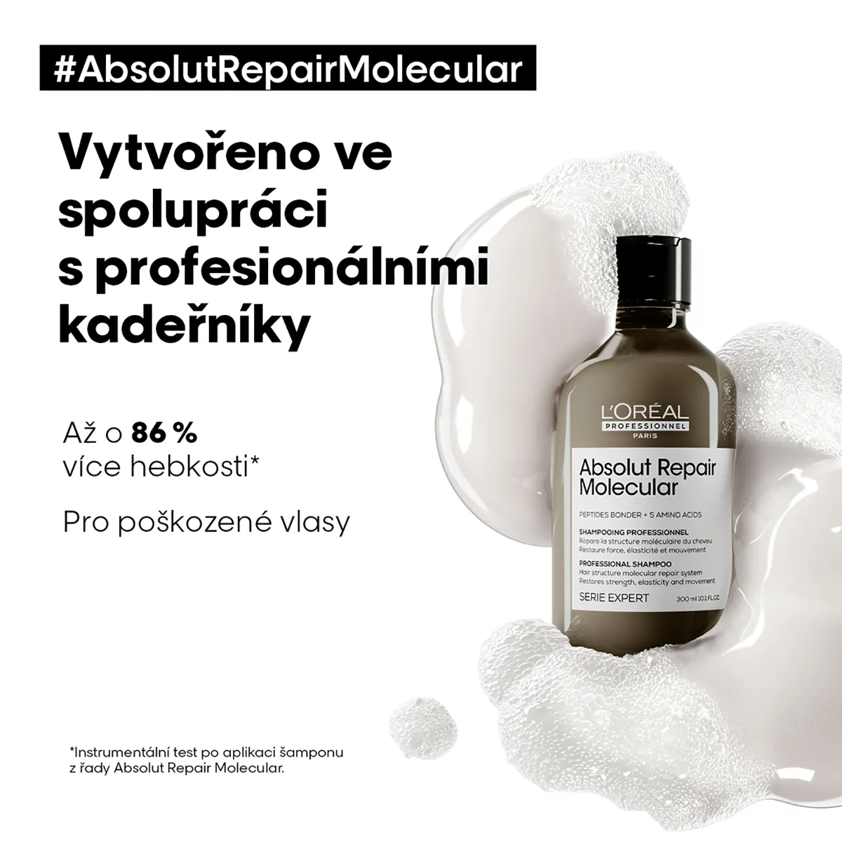 Šampon obohacený o 5 aminokyselin a složku Peptides bonder pomáhá obnovit molekulární strukturu vlasového vlákna. Tato struktura se skládá z peptidů, ale většina z nich je příliš velká, aby se do vlákna dostala z produktů. L'Oréal během svého výzkumu zjistil, jak je rozložit a dostat tak tyto jeho části do vlákna vlasu. Šampon Repair Molecular je tak schopen zlepšit stav i velmi poškozených vlasů během jednoho použití tím, že obnovuje jejich molekulární strukturu a navrací jim původní sílu a pružnost.