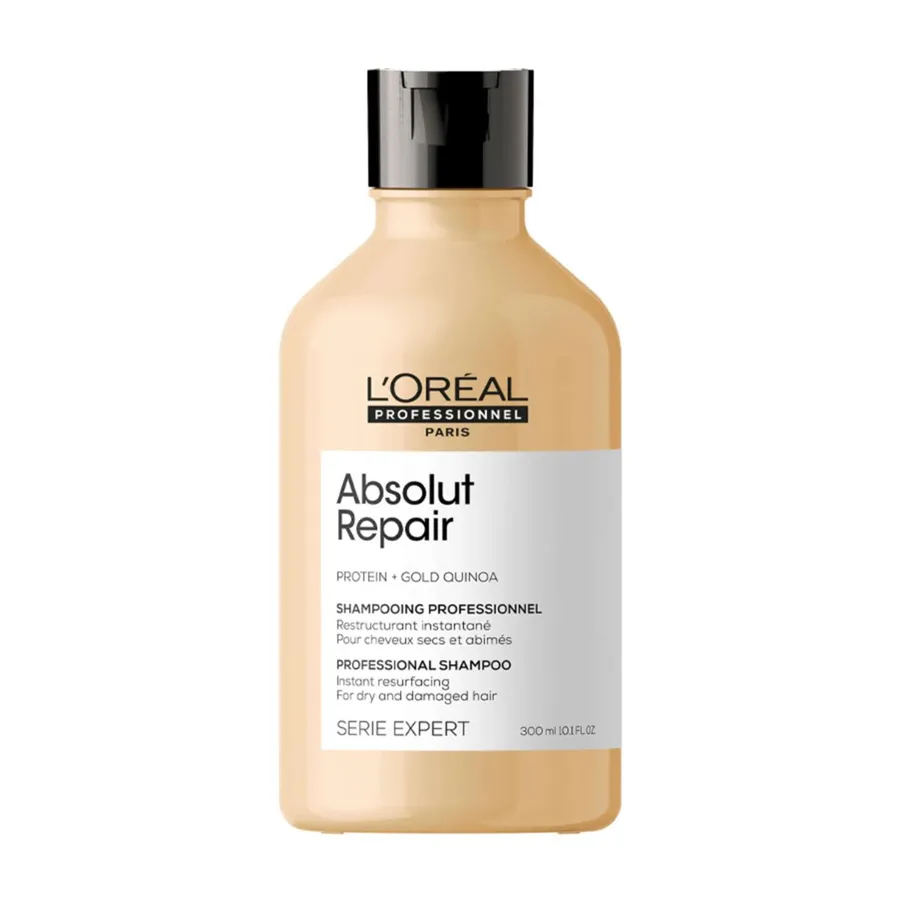 Šampon L'Oréal Professionnel Absolut Repair je ideální péčí pro suché a poškozené vlasy a vlasy zatížené chemickými úpravami. Šetrně čistí, zanechává vlasy hebké, lehké a lesklé. Viditelně regeneruje poškozený povrch vlasů, posiluje je a usnadňuje jejich úpravu. Vytváří ochranný film, který chrání před dalším poškozením.