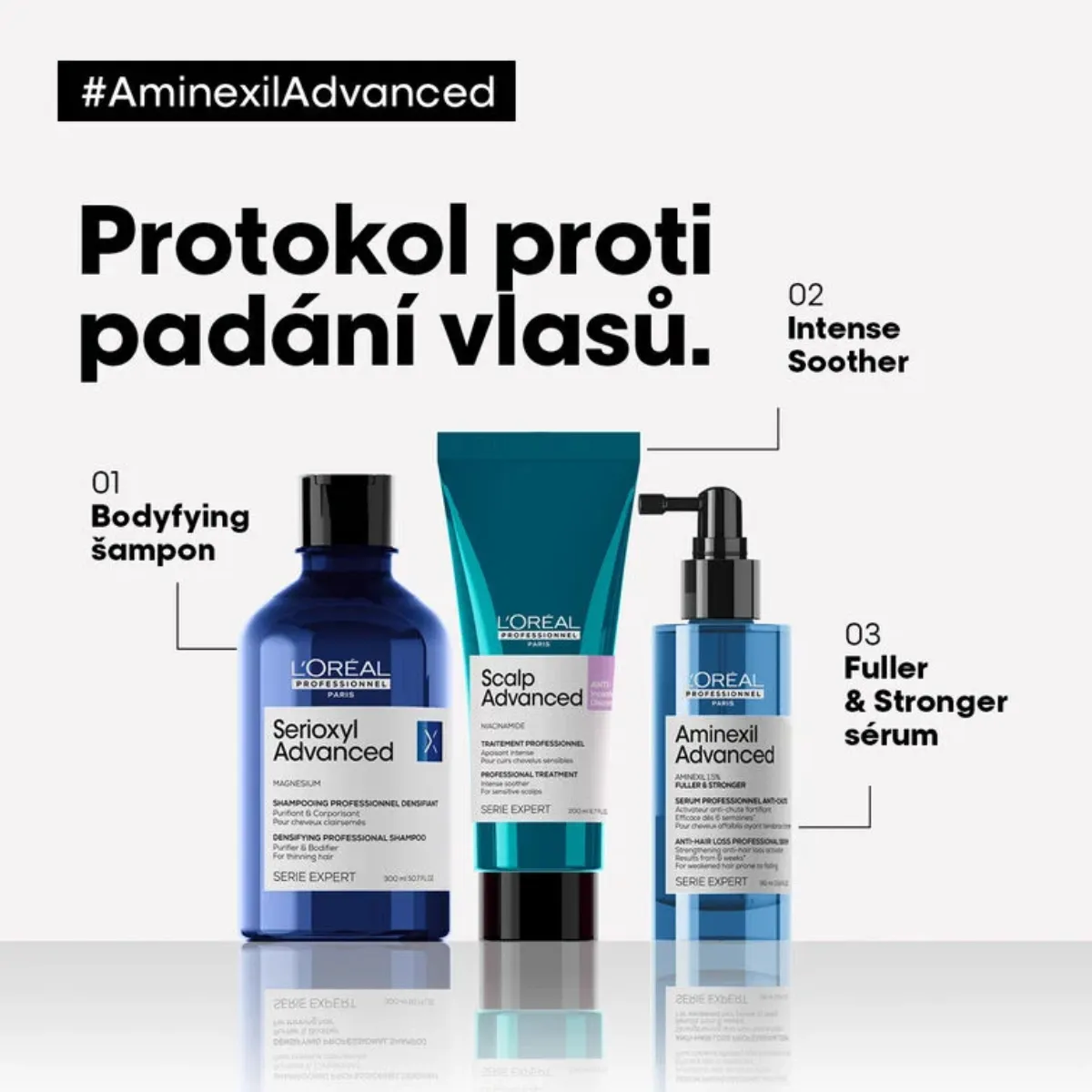 Toto lehké sérum s obsahem 1,5 % Aminexilu je navrženo pro vlasy se sklonem k padání. Působí přímo na pokožku hlavy, kde pomáhá redukovat vypadávání a zároveň posiluje vlasová vlákna, díky čemuž vlasy působí plněji a zdravěji. Jeho svěží vůně navozuje pocit čistoty a profesionální péče, zatímco jemná textura nezatěžuje vlasy.
