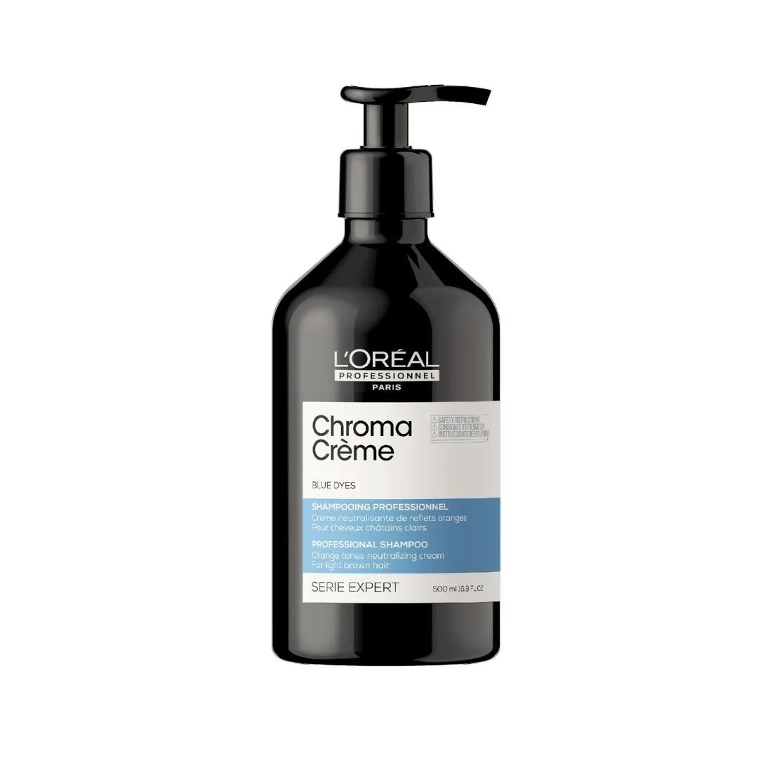 L'Oréal Professionnel Serie Expert Chroma Crème Blue Dyes Shampoo je ideální volbou pro hnědé až světle hnědé barvené vlasy, které trápí oranžové podtóny. Tento šampon vlasy důkladně čistí, zatímco modré pigmenty pomáhají vyrovnat barevné změny vznikající po barvení nebo působením slunečního záření. Výsledkem jsou přirozeně vypadající a barevně vyvážené vlasy bez nežádoucích odlesků.