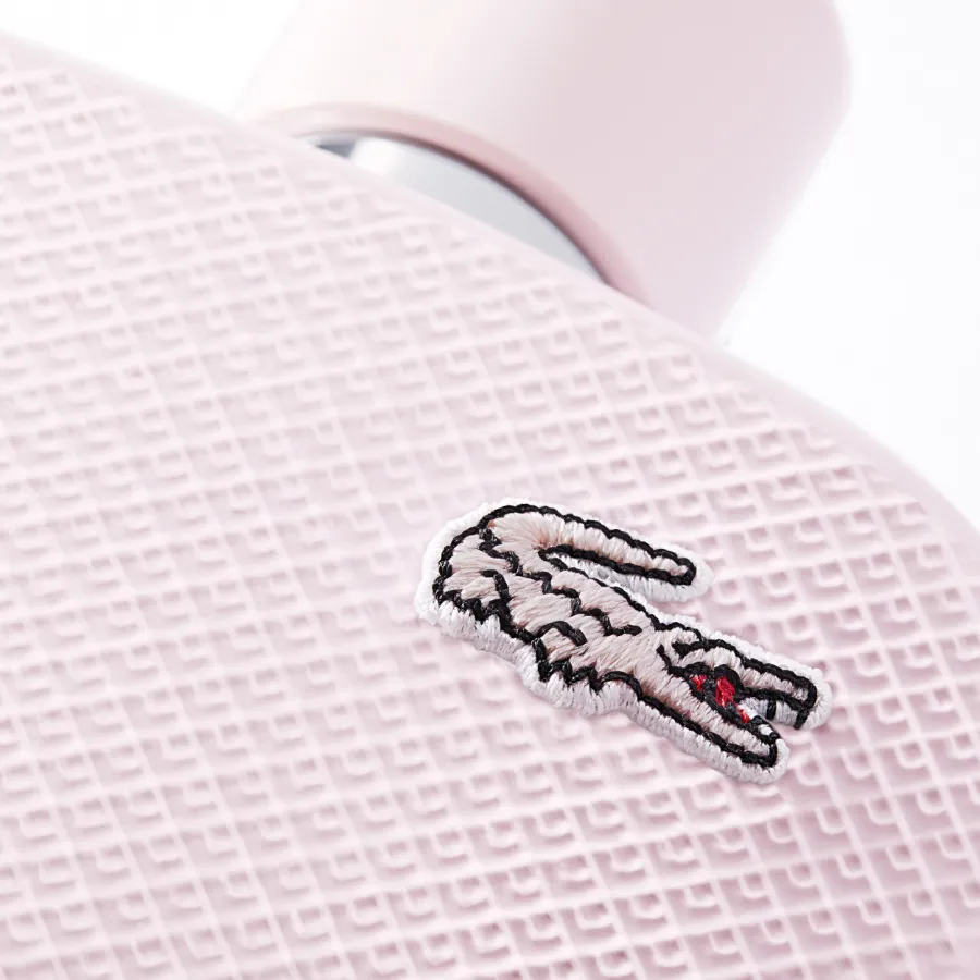 Flakon a krabička mají ikonický vzor „petit piqué“, který připomíná látku polokošil. Každý flakon je zdoben autentickou výšivkou krokodýla Lacoste, stejně jako tomu je na polokošilích.