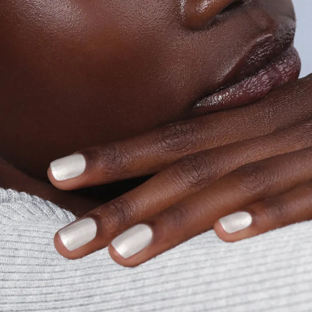 Chromový gelový lak na nehty ve sněhovém, pudrovém odstínu inspirovaný jiskřivou zimou vás bude bavit. Nečekaně odolný a bez toxických rozpouštědel.