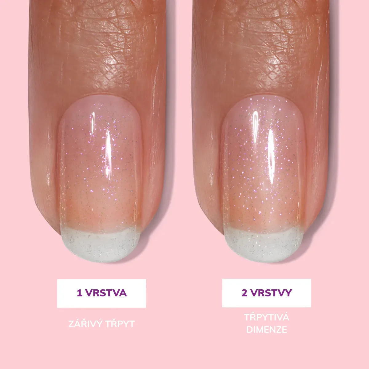 - Obsahuje jemné třpytivé částečky, které dokonale zachycují světlo – dodávají nehtům sofistikovaný lesk a snovou zářivost.