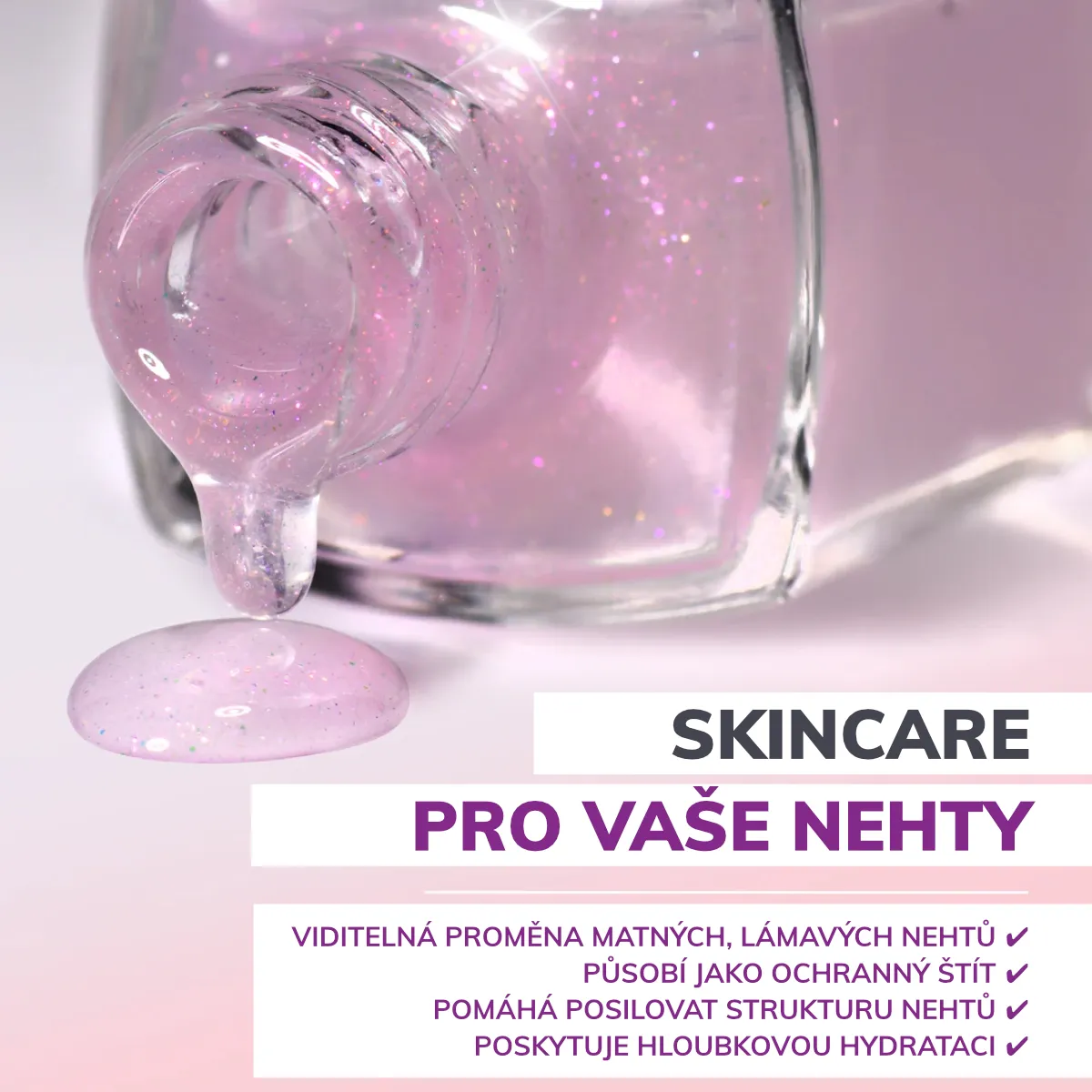 - Viditelně proměňuje mdlé, lámavé a špatně rostoucí nehty okamžitě i při dlouhodobém používání.