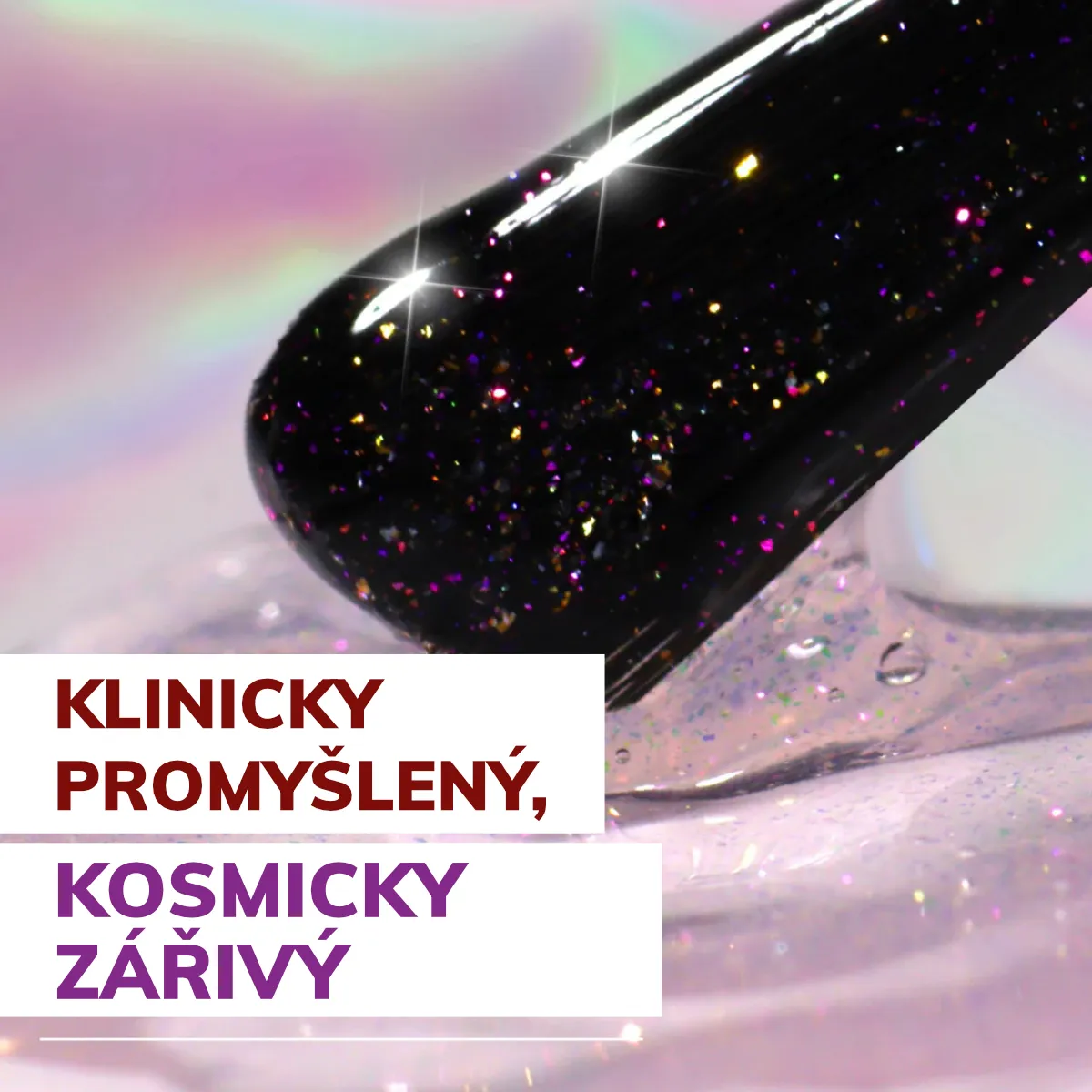 Naneste 1–2 tenké vrstvy na čisté a upravené nehty. Jedna vrstva dodá jemný éterický třpyt, dvě promění nehty v kosmickou záři. Noste samostatně, nebo použijte přes některou z tónovaných péčí, nebo jako vrchní vrstvu přes svůj oblíbený lakur.