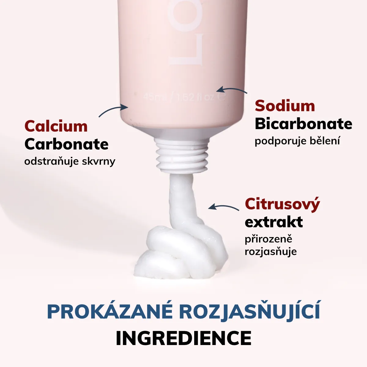 - Uhličitan vápenatý (Calcium Carbonate) účinně odstraňuje skvrny a viditelně redukuje zabarvení