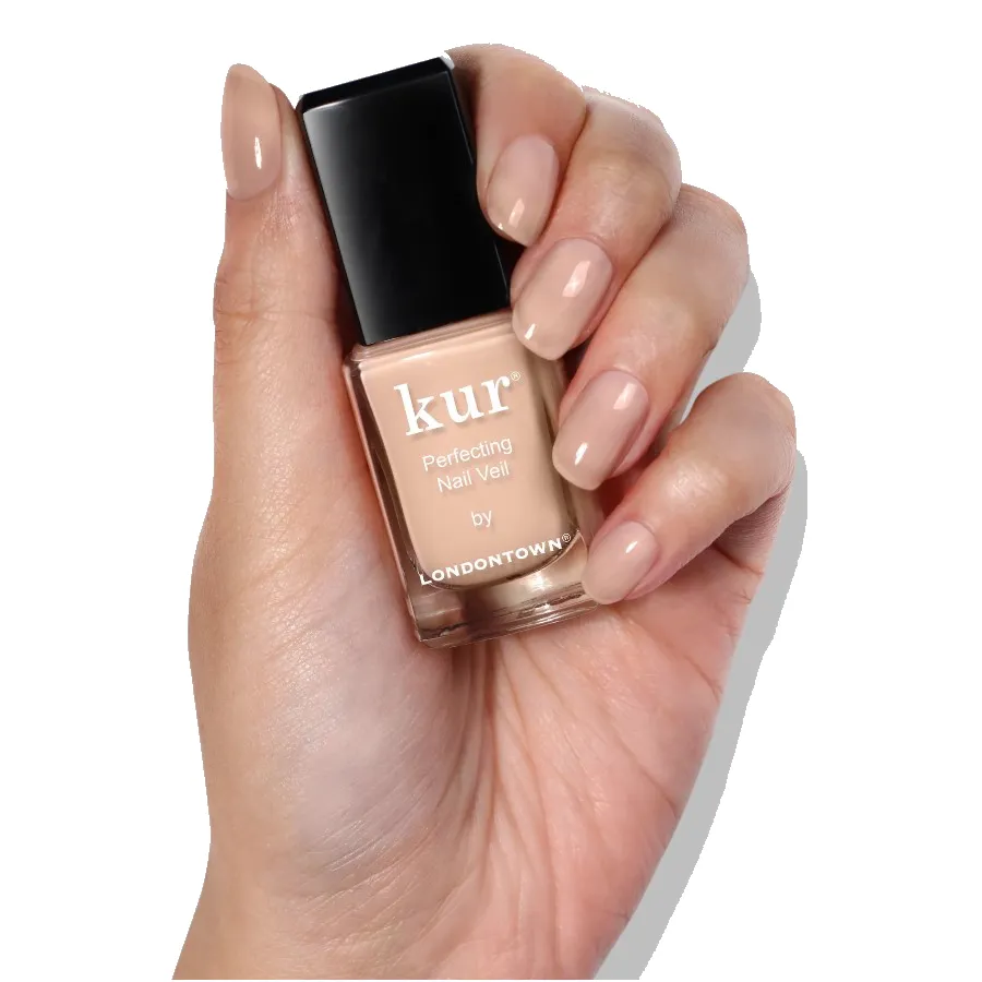 Tónovaný hydratační a zpevňující lak Nail Veil přináší nejjednodušší manikúru, jakou si umíte představit. Je to výživný závoj. Má všechny úžasné vlastnosti péčí Kur včetně výživného Florium Complex®. Neutrální odstíny zdokonalujících závojů jsou velmi elegantní a univerzální. Londontown v nich ubral pigment, aby posílil pečující účinky. Ultra-jemné odstíny okamžitě zdokonalují a vylepšují přirozený vzhled nehtů, zatímco směs aktivních látek je posiluje a hydratuje. Stačí nanést jednu až dvě vrstvy, nechat zaschnout a vyrazit ven. Nepotřebujete žádný podkladový ani vrchní lak (ale můžete je použít). Až svůj Perfecting Nail Veil odstraníte, nehty budou vypadat omlazenější a zdravější než dřív.