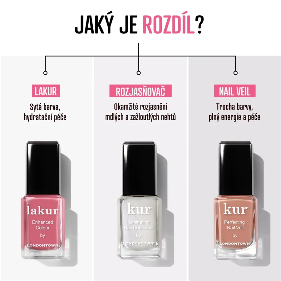 Řada péčí na nehty Kur Londontown obsahuje účinné látky, které penetrují hluboko do nehtu a viditelně zlepšují jejich růst, ohebnost a texturu.