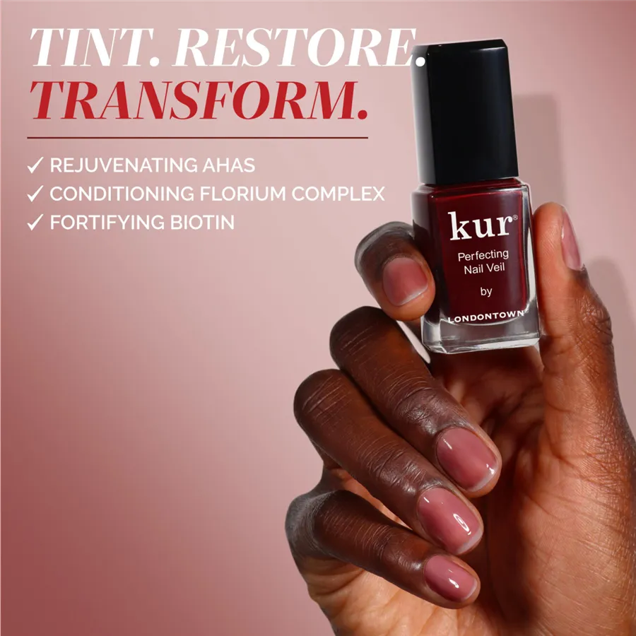 Tónovaný hydratační a zpevňující lak Nail Veil přináší nejjednodušší manikúru, jakou si umíte představit. Je to výživný závoj. Má všechny úžasné vlastnosti péčí Kur včetně výživného Florium Complex®. Neutrální odstíny zdokonalujících závojů jsou velmi elegantní a univerzální. Londontown v nich ubral pigment, aby posílil pečující účinky. Ultra-jemné odstíny okamžitě zdokonalují a vylepšují přirozený vzhled nehtů, zatímco směs aktivních látek je posiluje a hydratuje. Stačí nanést jednu až dvě vrstvy, nechat zaschnout a vyrazit ven. Nepotřebujete žádný podkladový ani vrchní lak (ale můžete je použít). Až svůj Perfecting Nail Veil odstraníte, nehty budou vypadat omlazenější a zdravější než dřív.