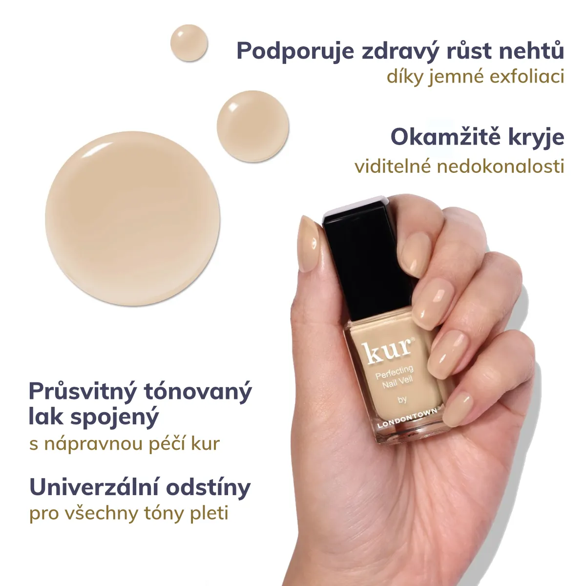 Řada péčí na nehty Kur Londontown obsahuje účinné látky, které penetrují hluboko do nehtu a viditelně zlepšují jejich růst, ohebnost a texturu.