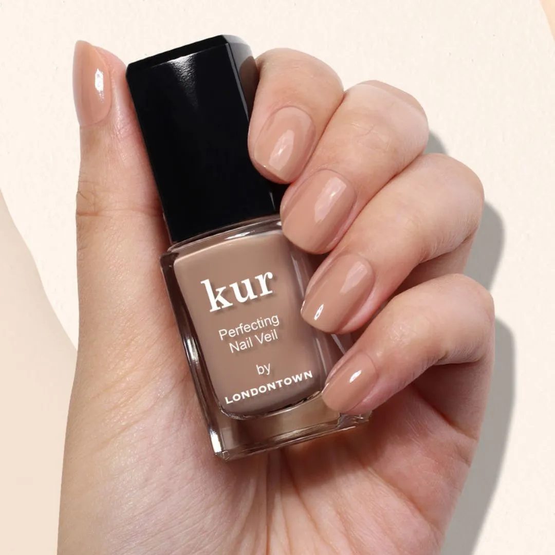 Tónovaný hydratační a zpevňující lak Nail Veil přináší nejjednodušší manikúru, jakou si umíte představit. Je to výživný závoj. Má všechny úžasné vlastnosti péčí Kur včetně výživného Florium Complex®. Neutrální odstíny zdokonalujících závojů jsou velmi elegantní a univerzální. Londontown v nich ubral pigment, aby posílil pečující účinky. Ultra-jemné odstíny okamžitě zdokonalují a vylepšují přirozený vzhled nehtů, zatímco směs aktivních látek je posiluje a hydratuje. Stačí nanést jednu až dvě vrstvy, nechat zaschnout a vyrazit ven. Nepotřebujete žádný podkladový ani vrchní lak (ale můžete je použít). Až svůj Perfecting Nail Veil odstraníte, nehty budou vypadat omlazenější a zdravější než dřív.