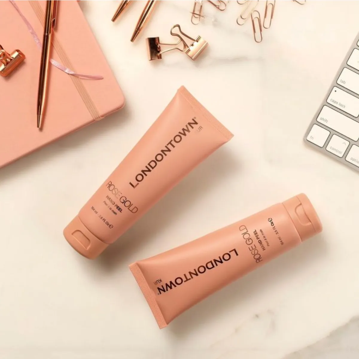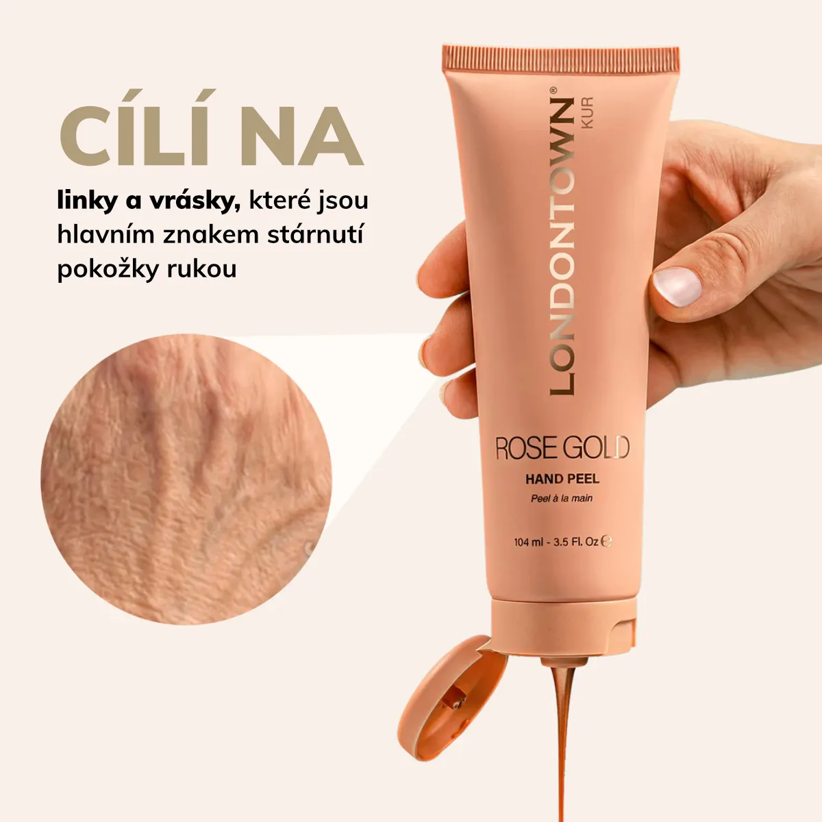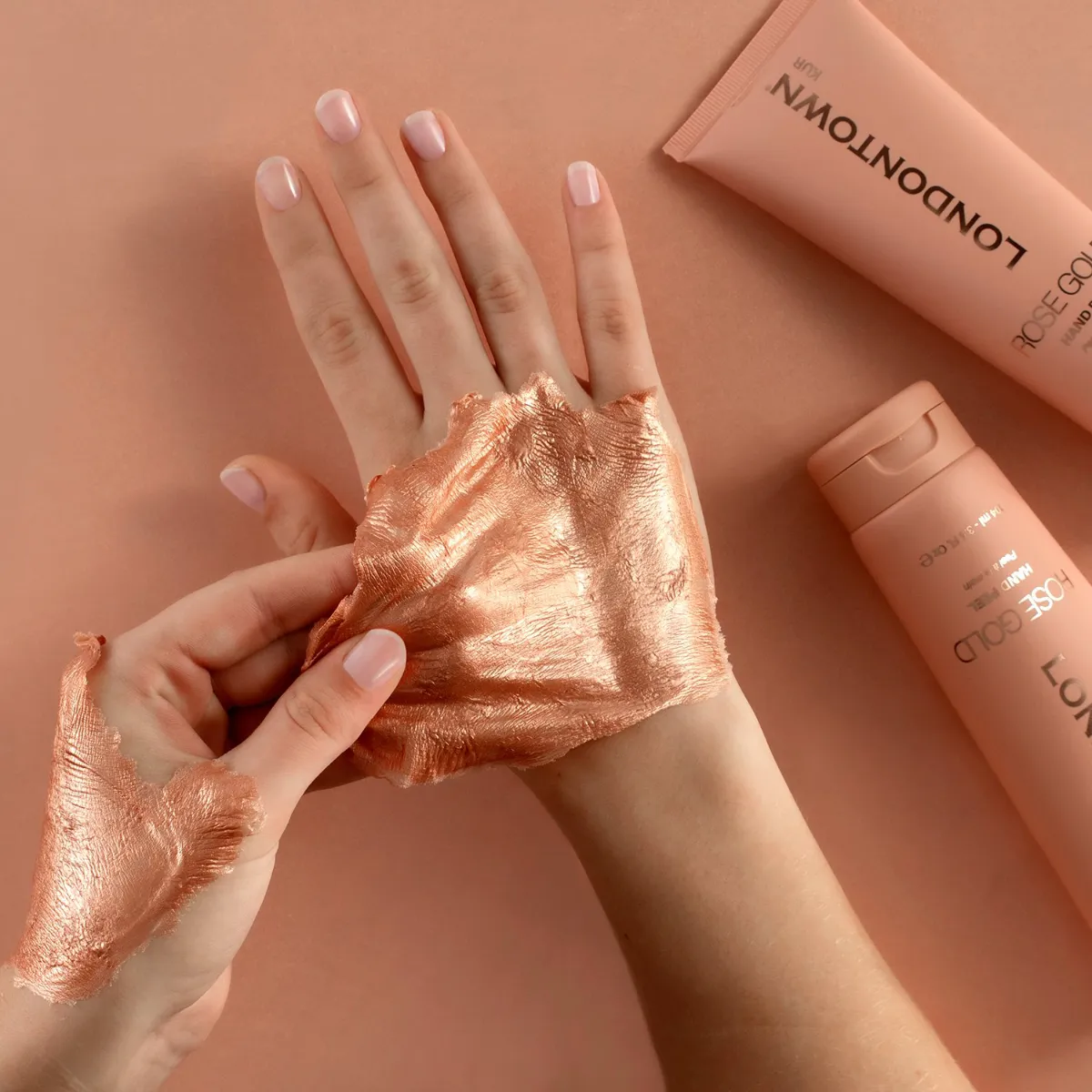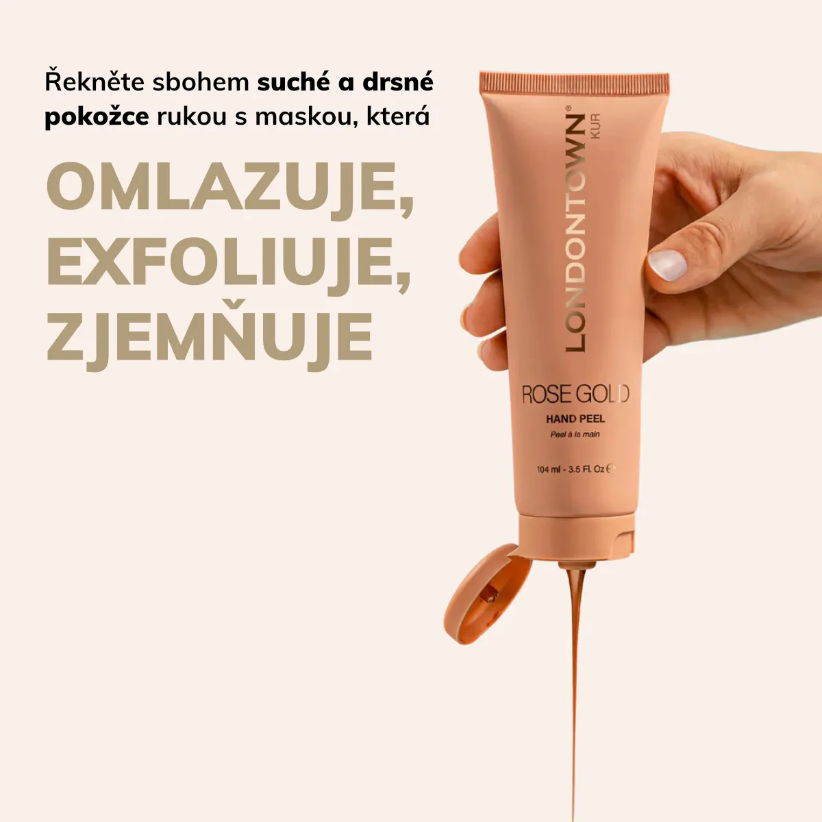 Luxusní slupovací maska se nanáší jako tekuté růžové zlato a zanechává pokožku rukou jemnou, regenerovanou a rozjasněnou.