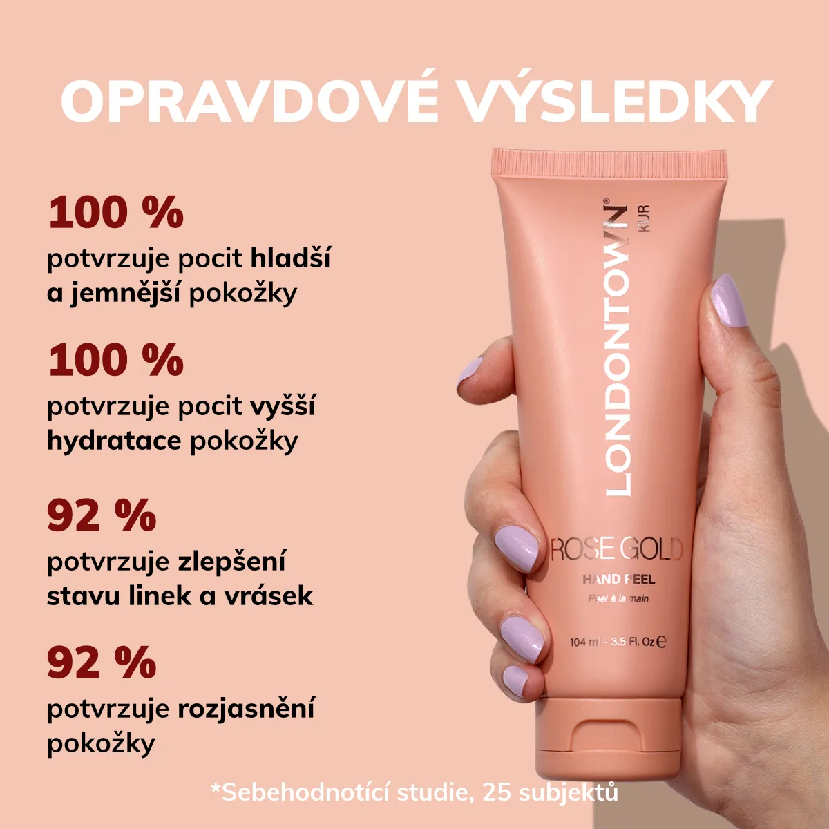 Použití: Naneste na čistou pokožku rovnoměrnou vrstvu na hřbet každé ruky a nechte 10-15 minut zaschnout. Po úplném zaschnutí masky jemně zvedněte okraje a sloupněte ji. Zbytky opláchněte teplou vodou a poté použijte krém na ruce