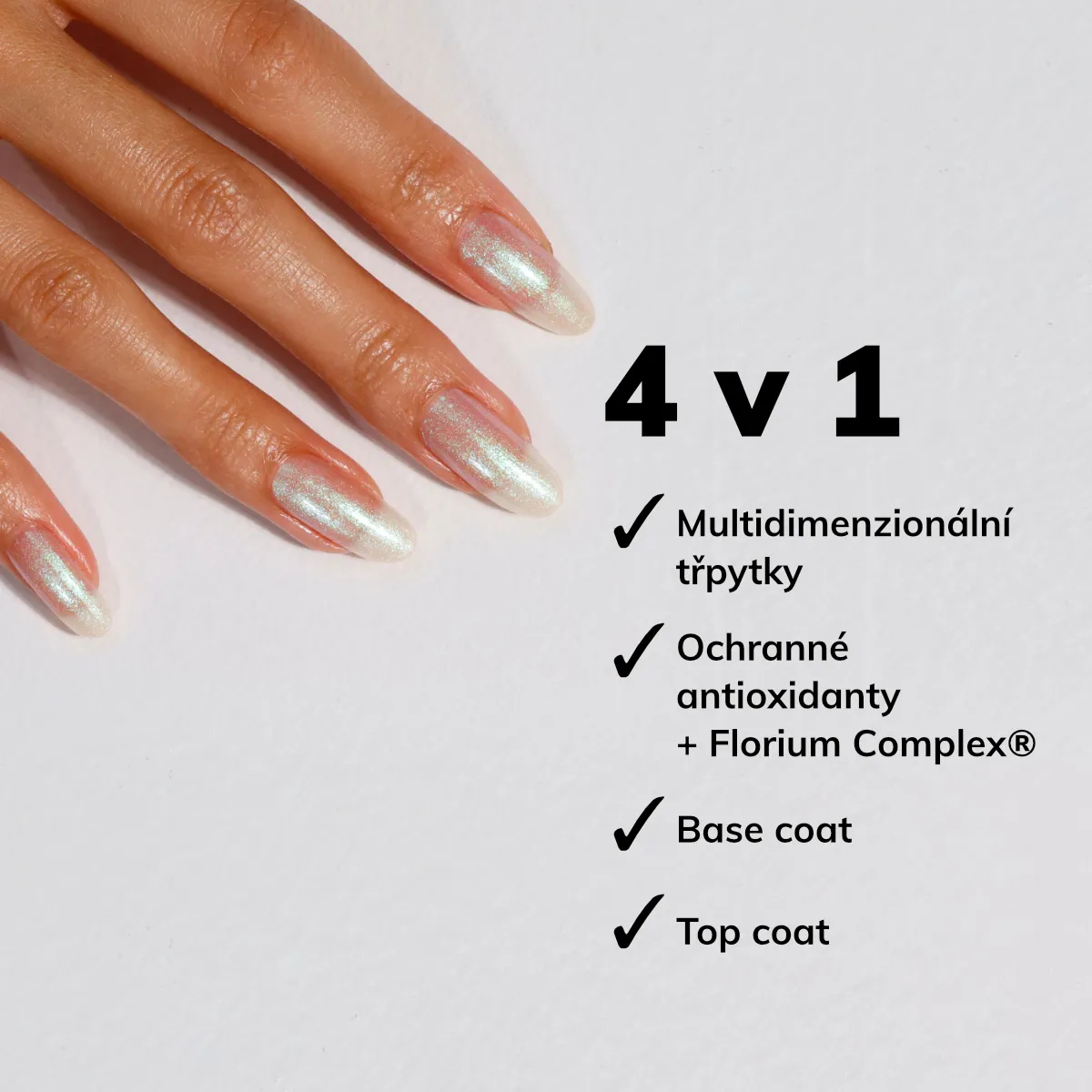 - složení 4 v 1 spojuje všechny výhody base coatu, top coatu, třpytivého laku a péče o nehty pro dokonalou manikúru v jediném kroku.