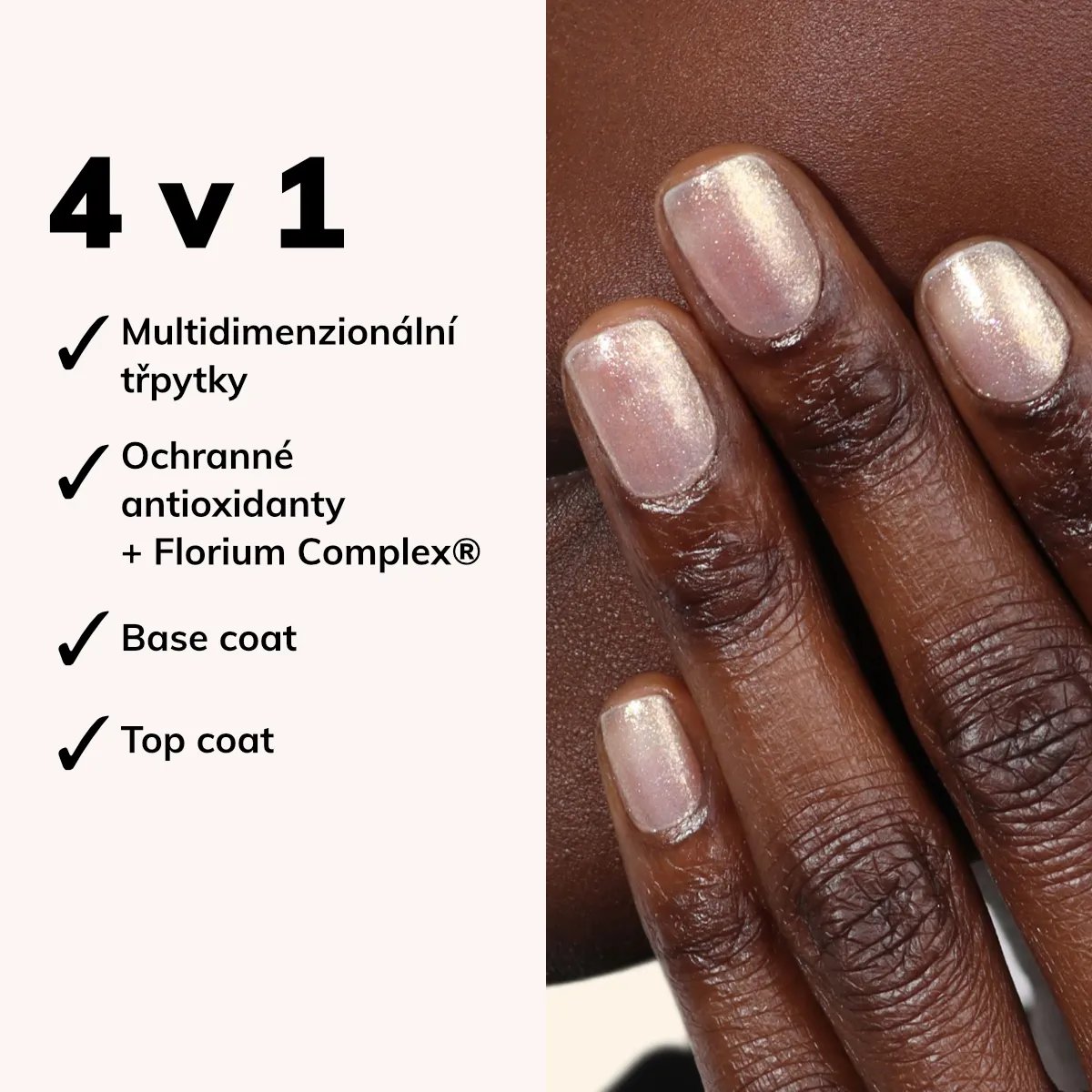 - složení 4 v 1 spojuje všechny výhody base coatu, top coatu, třpytivého laku a péče o nehty pro dokonalou manikúru v jediném kroku.