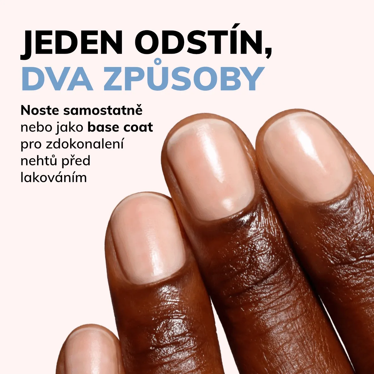 Výživný lak s jemnou barvou vyhlazuje rýhy a nerovnosti na nehtech. Noste jej samostatně nebo jako zpevňující base coat. Clean beauty.