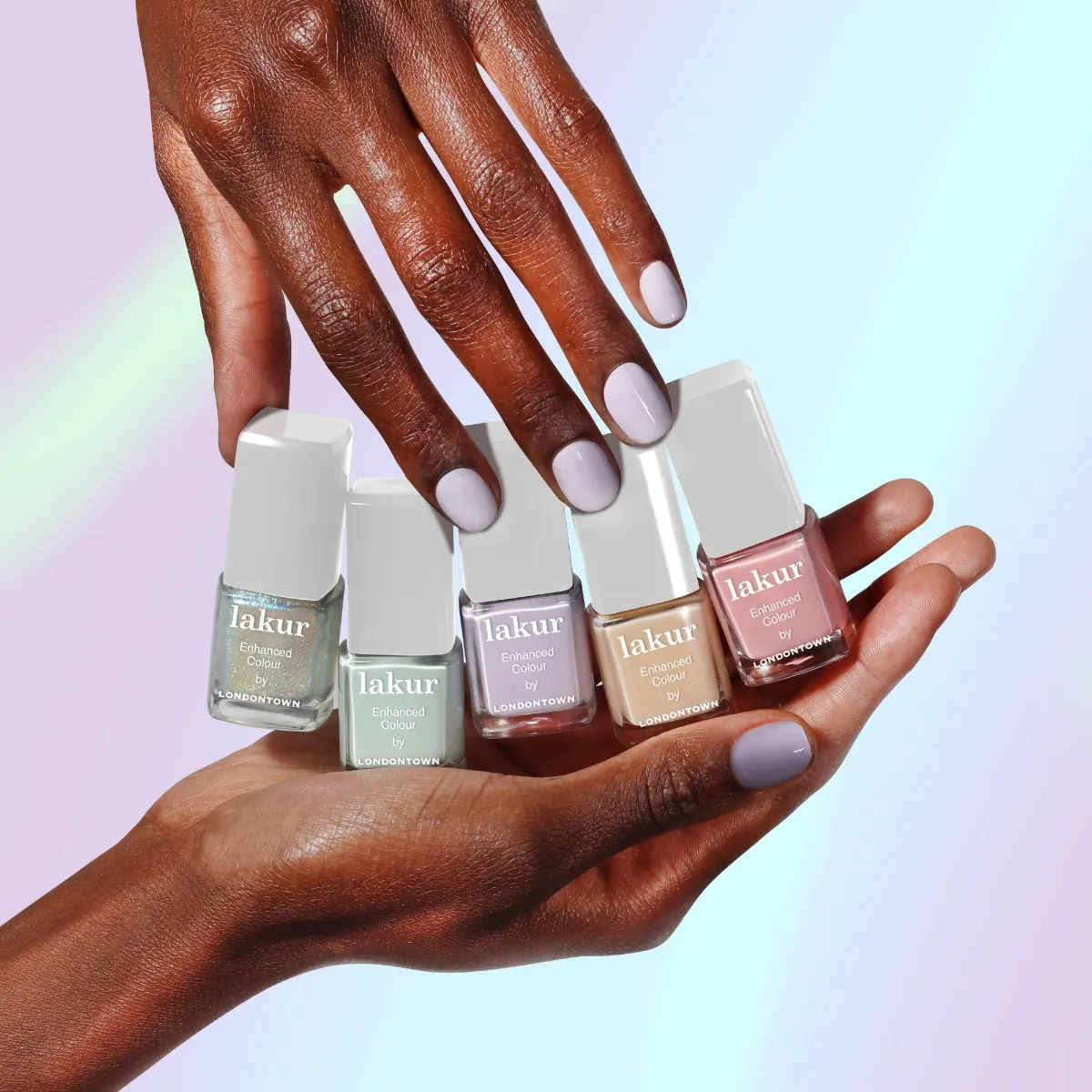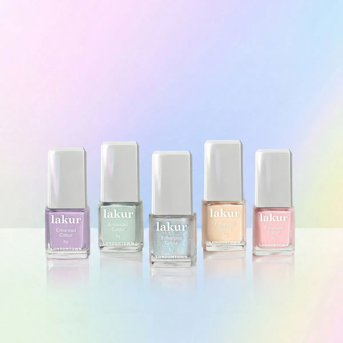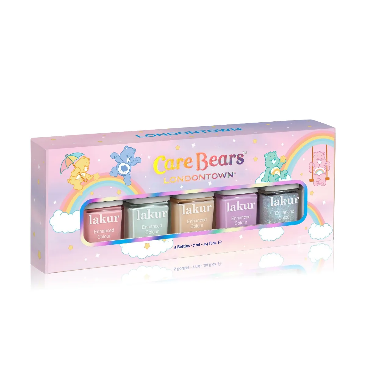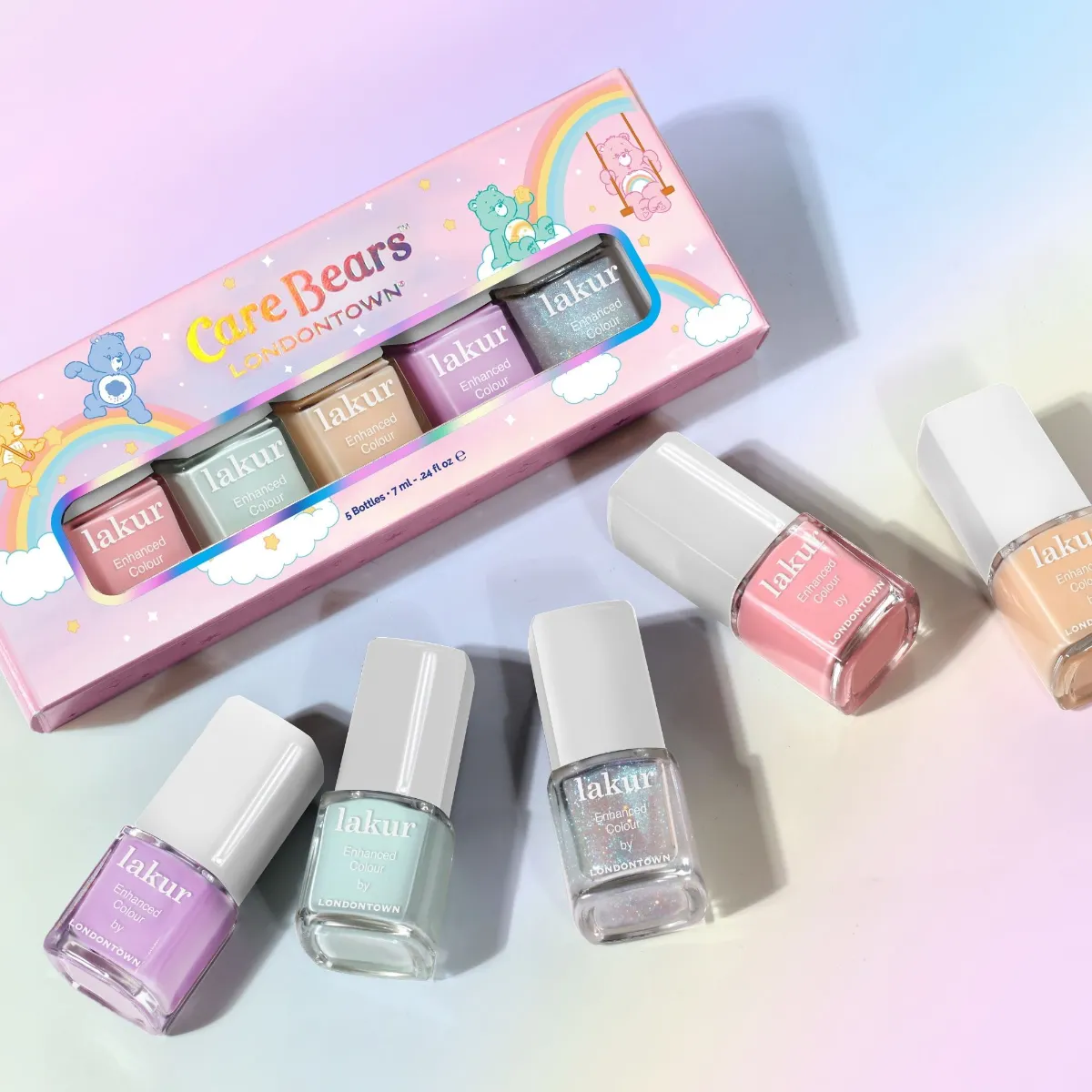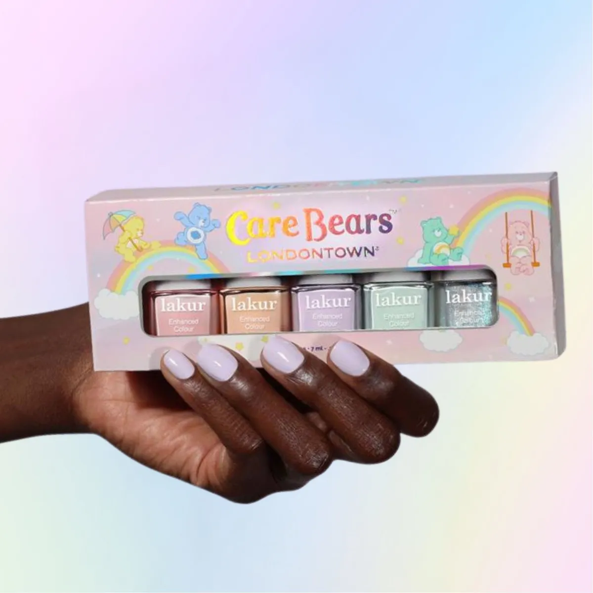 Londontown810204970425LT66389GK0J000101Miniatury výživných laků na nehty v pastelových odstínech inspirované medvídky Care Bears. Hravá a optimistická manikúra. Clean beauty.